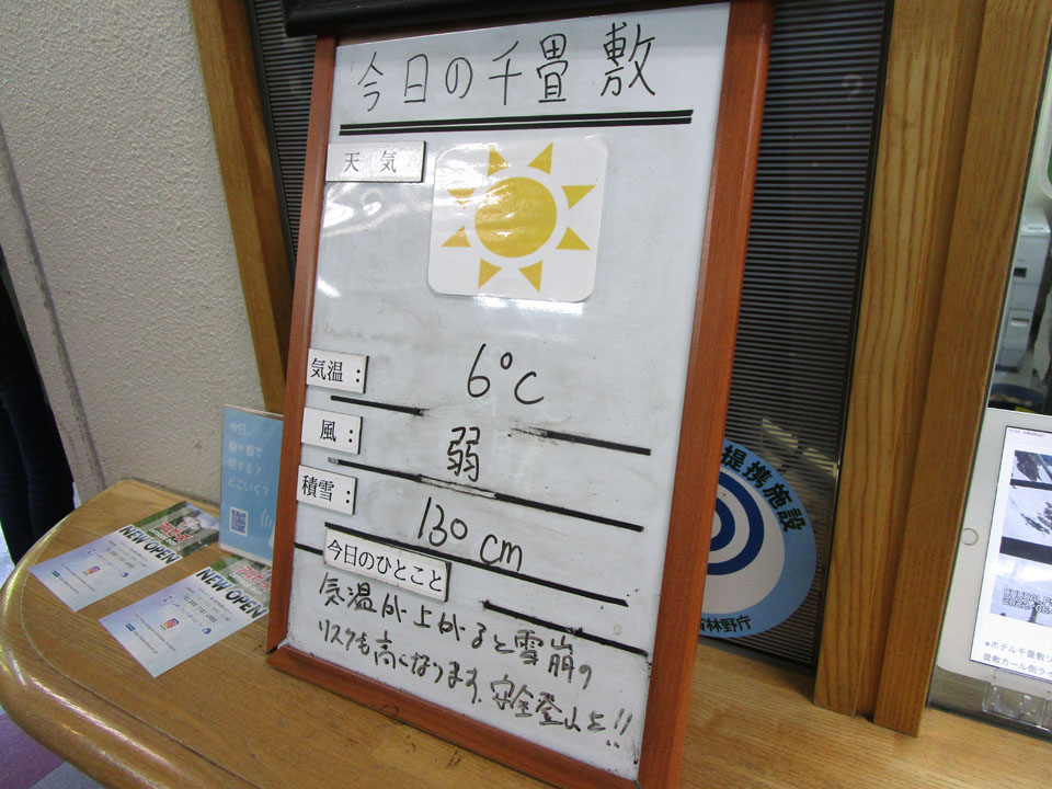 千畳敷では+6℃、積雪130cm。