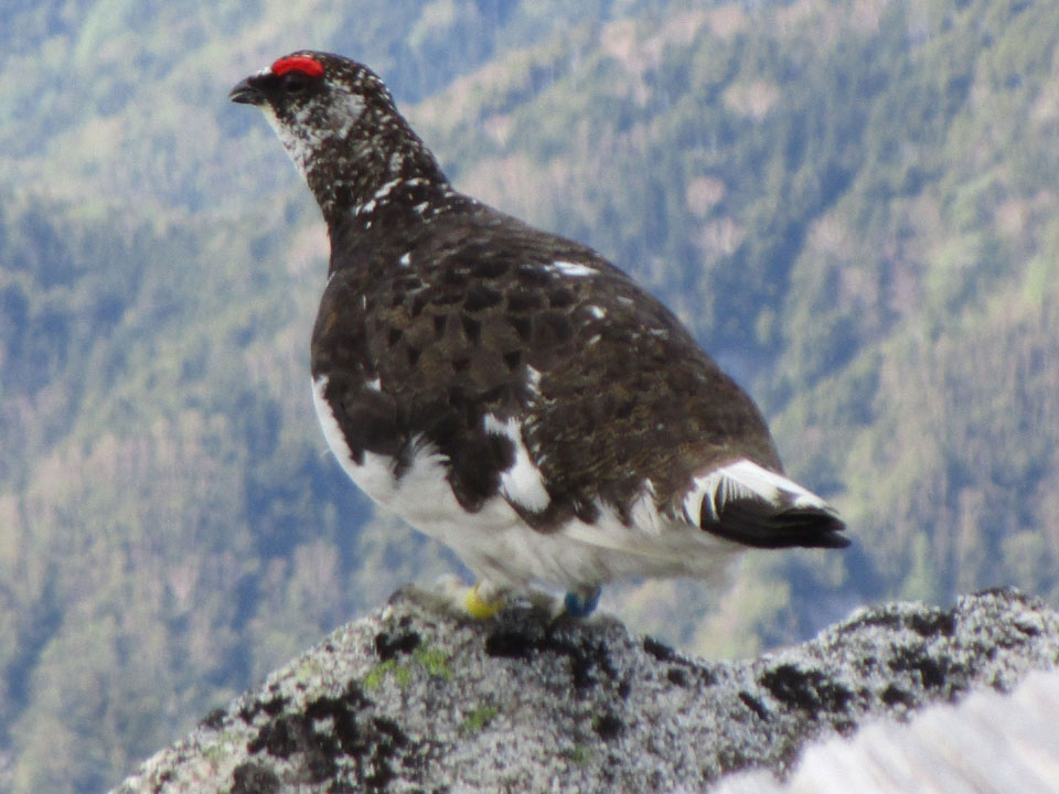 雷鳥がいる。背景が樹林帯なのも、北アルプスではなく木曽駒っぽい感じだ。