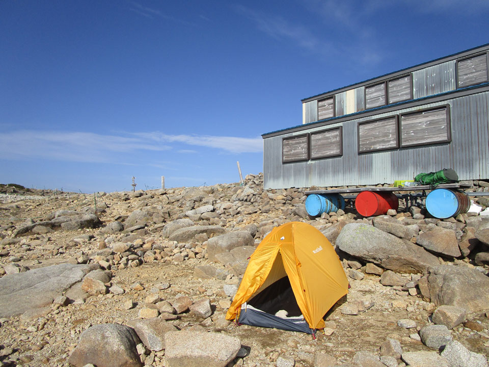 今回は天気もいいのでテント泊である。