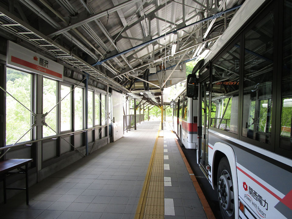 ロープウェイ、ケーブルカーと乗り継ぎ、関電のトロリーバスに乗る。