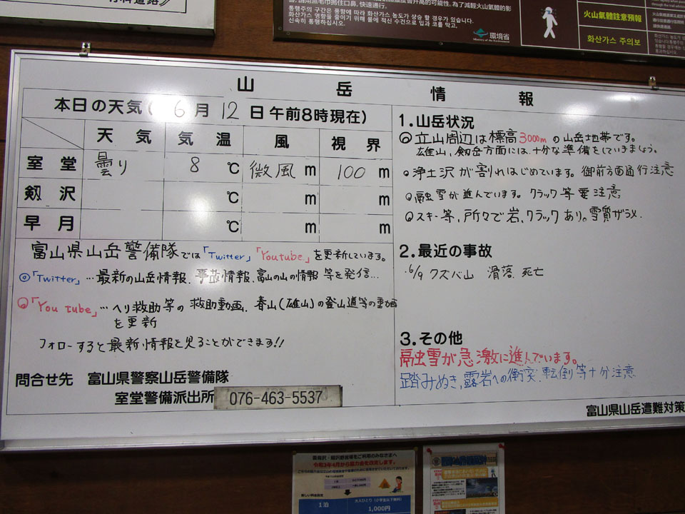 室堂ターミナルの情報掲示板。