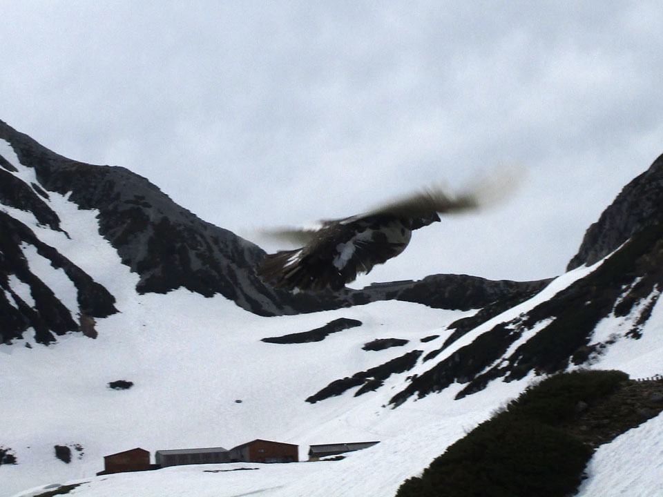 雷鳥が飛来。飛んでいるところを写真撮影したのは初めて。