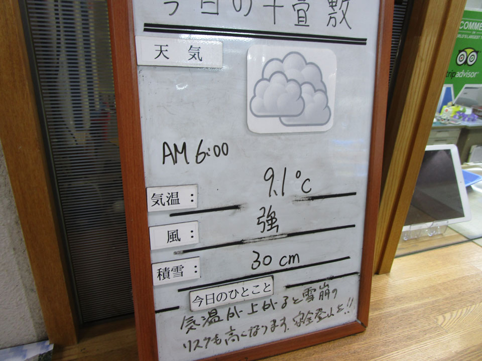 千畳敷では+9℃、積雪30cm。