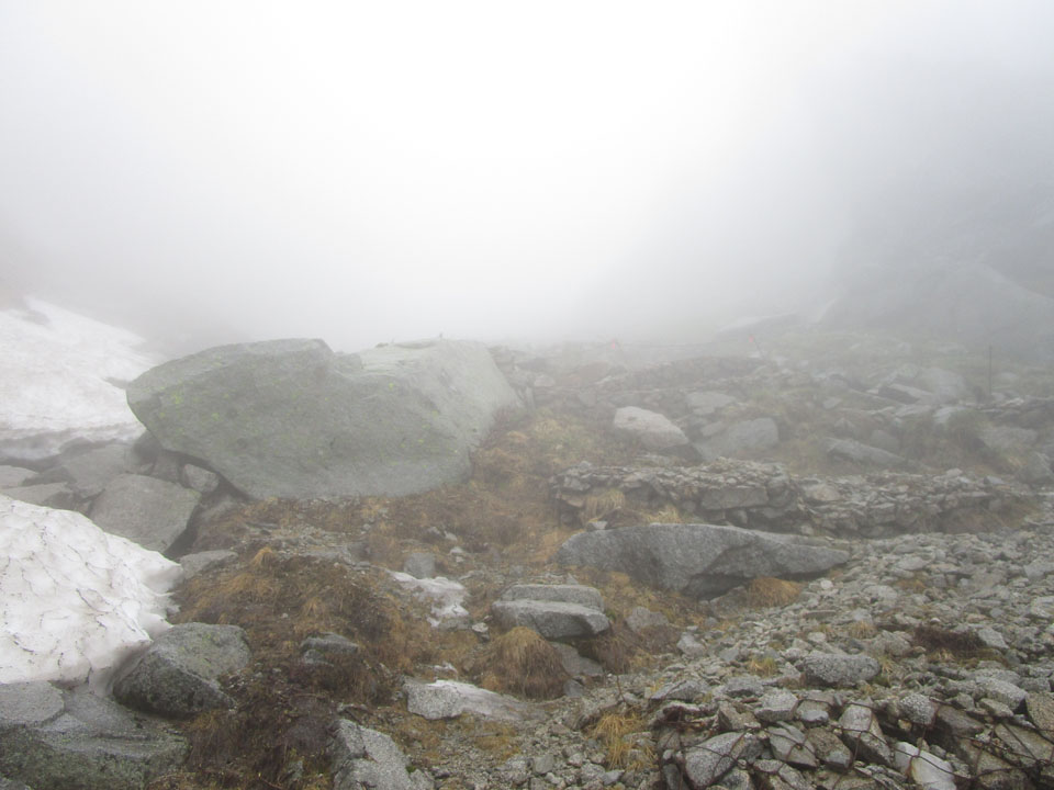 雪があるが、もうアイゼンいらないかも。