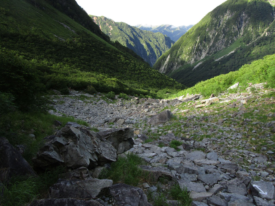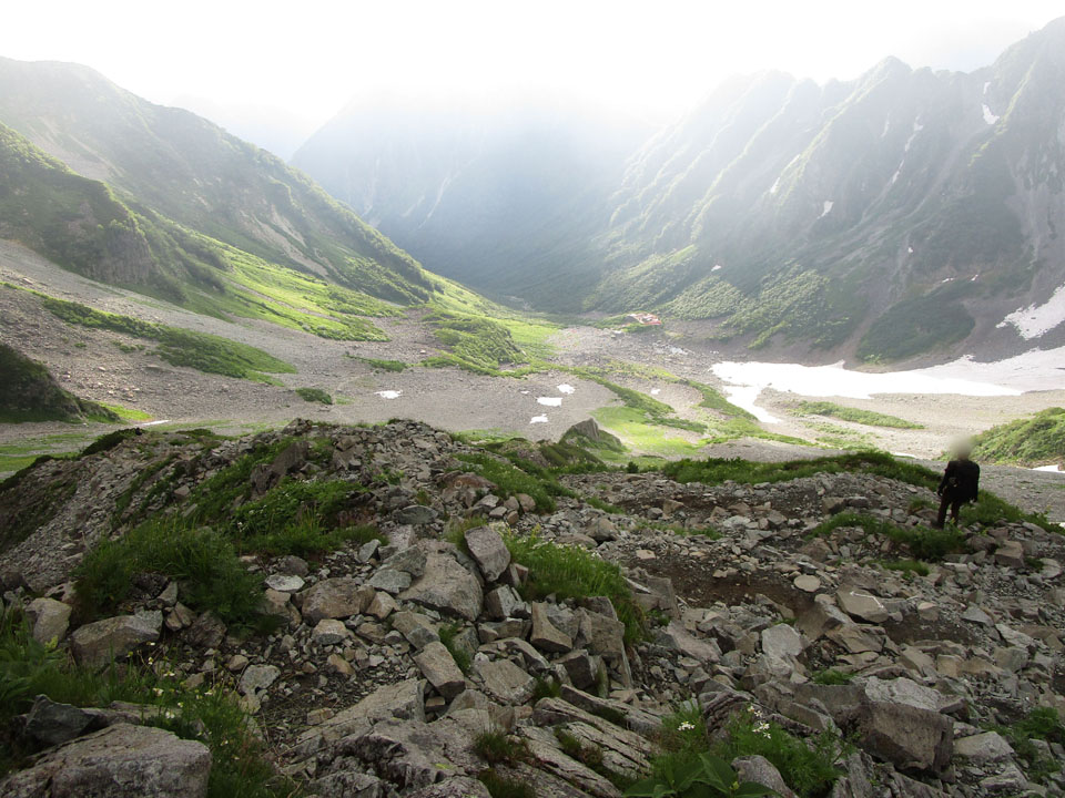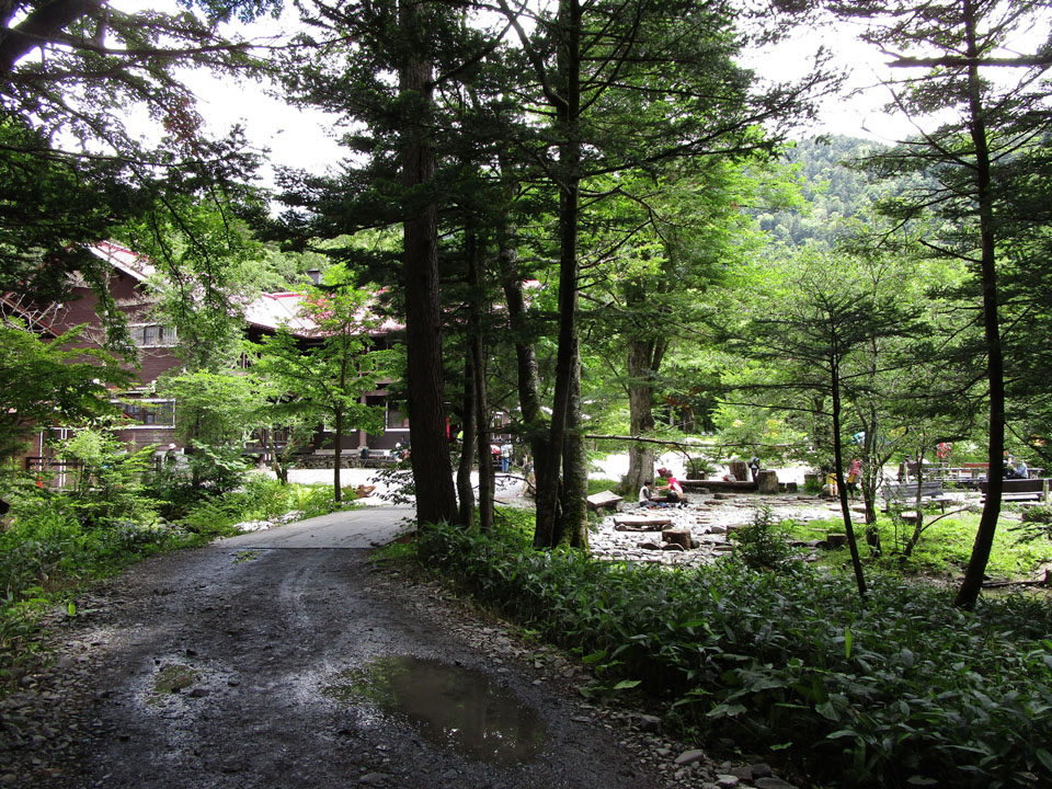 横尾まで降りてきた。ここまでくればほぼ下界。救急車も来れる(2時間以上かかるが)。