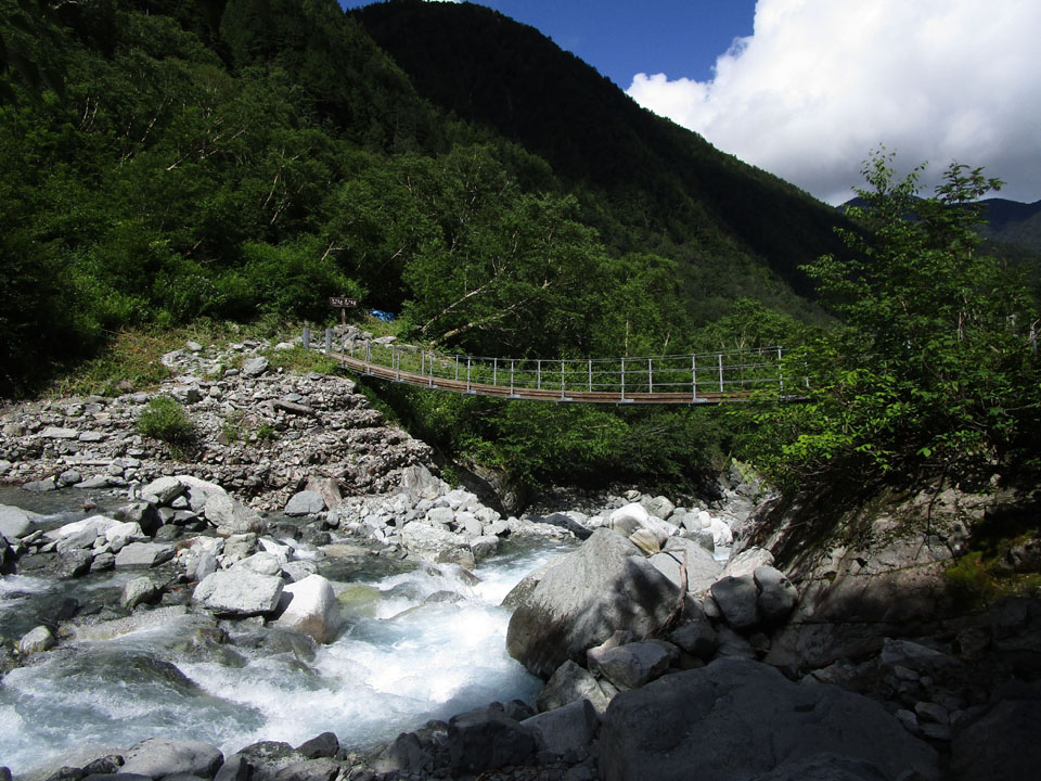上高地〜横尾間は、頑張れば2時間ジャストで歩ける。