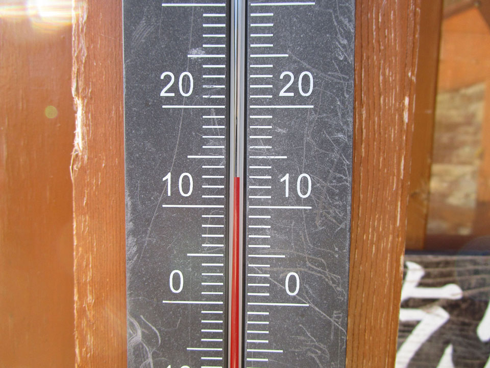 槍ヶ岳山荘はここよりも100m高いことから、気温差が0.7℃くらいある。妥当なところだ。
