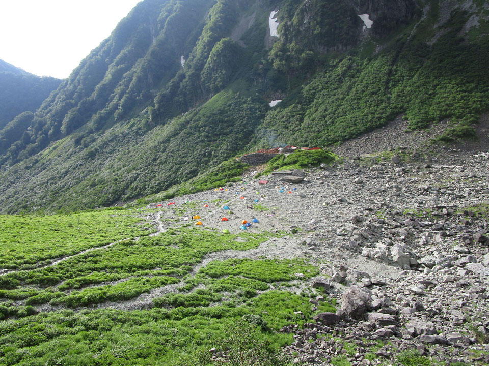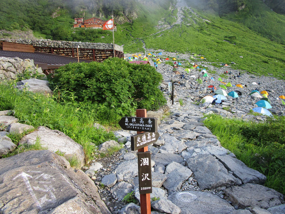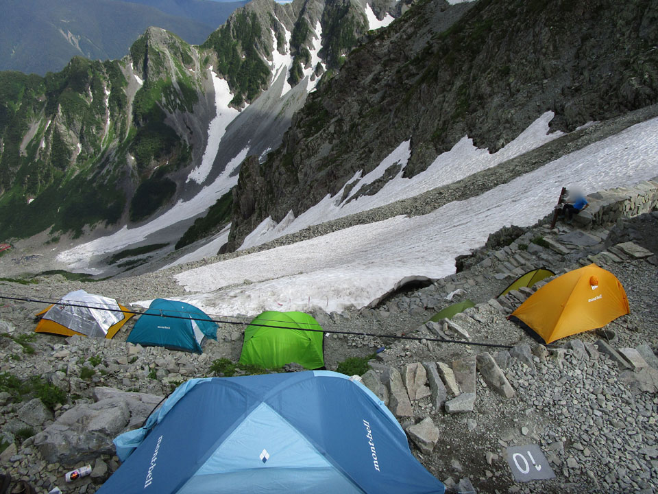 穂高岳山荘のテント場は今年から予約制が解除され先着順のため、