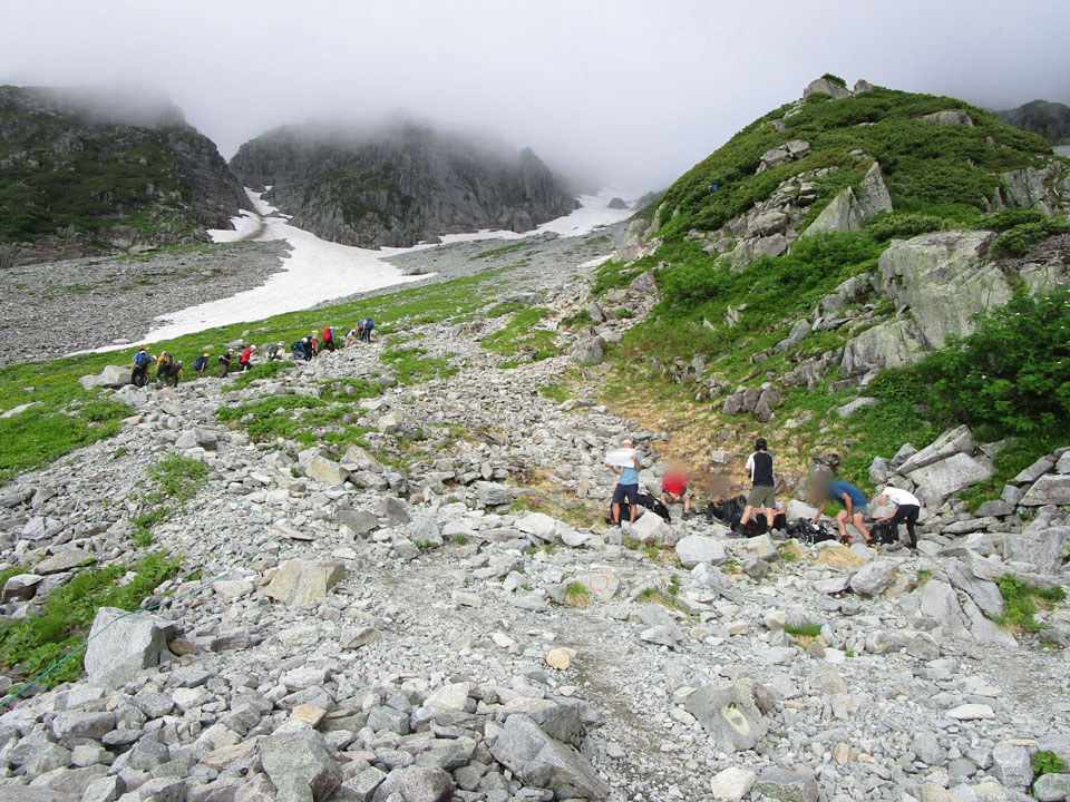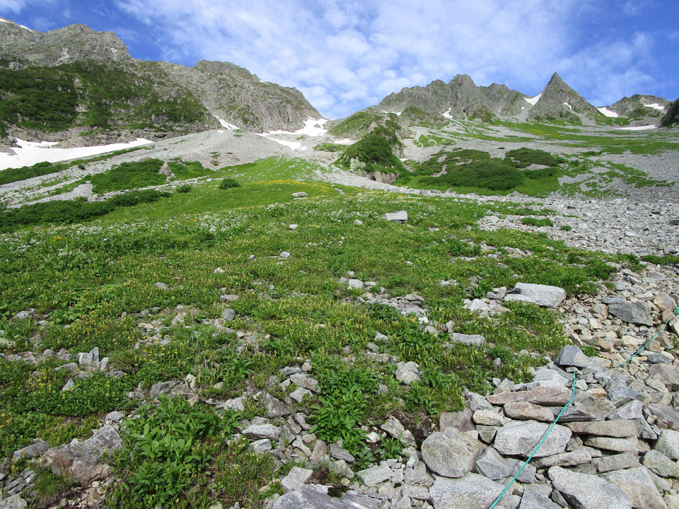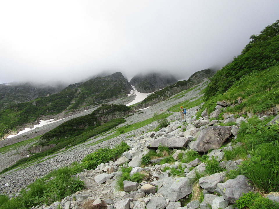 登山道上の残雪は、ザイテンの最上部で20mくらい残っているのみで、