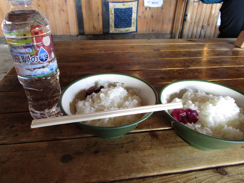 涸沢小屋ではお湯だけ貰うことも可能でアルファ米を作成できる。