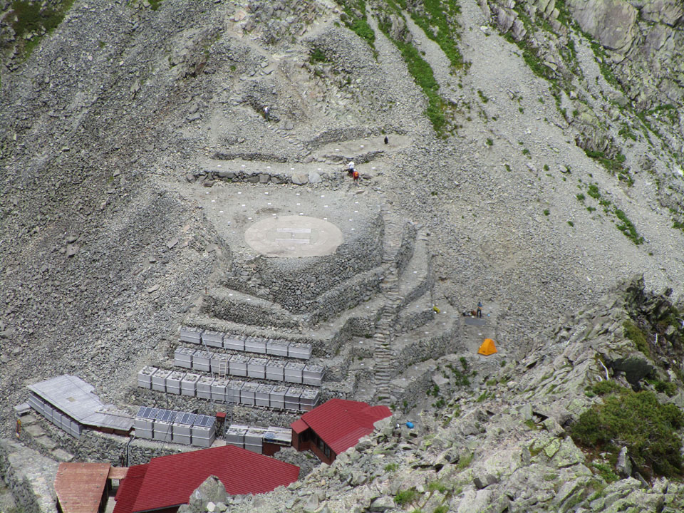 穂高岳山荘への水供給施設が見える。水は命。