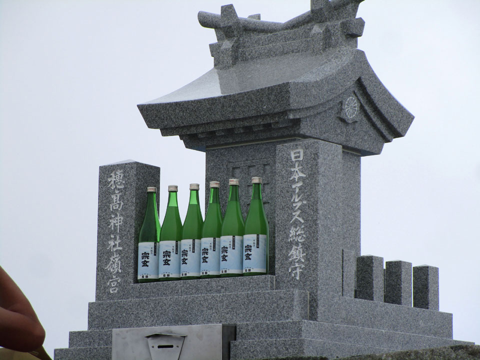 山頂のお供え物の日本酒がすごい。