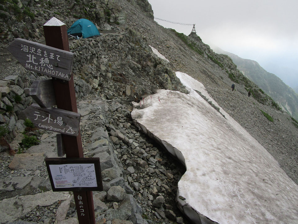 穂高岳山荘手前には残雪が20mほど。