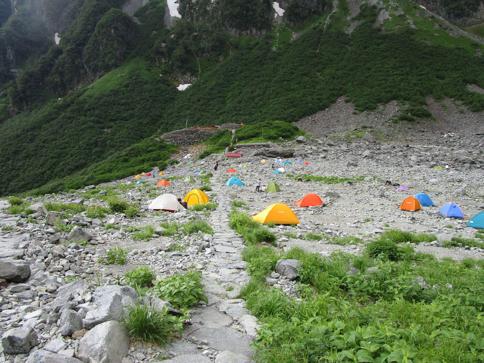 奥穂山頂等でビバークになってしまったという話も聞く(奥穂山頂は5張程度)。