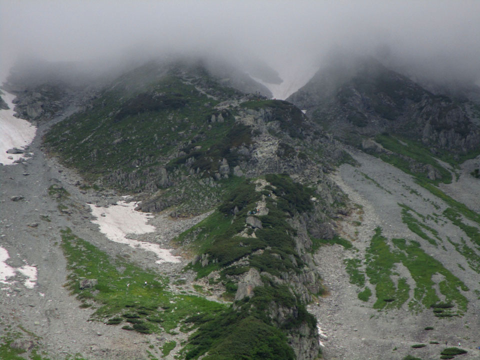 超絶壁のテント場、寝相が悪かったら落っこちそう。