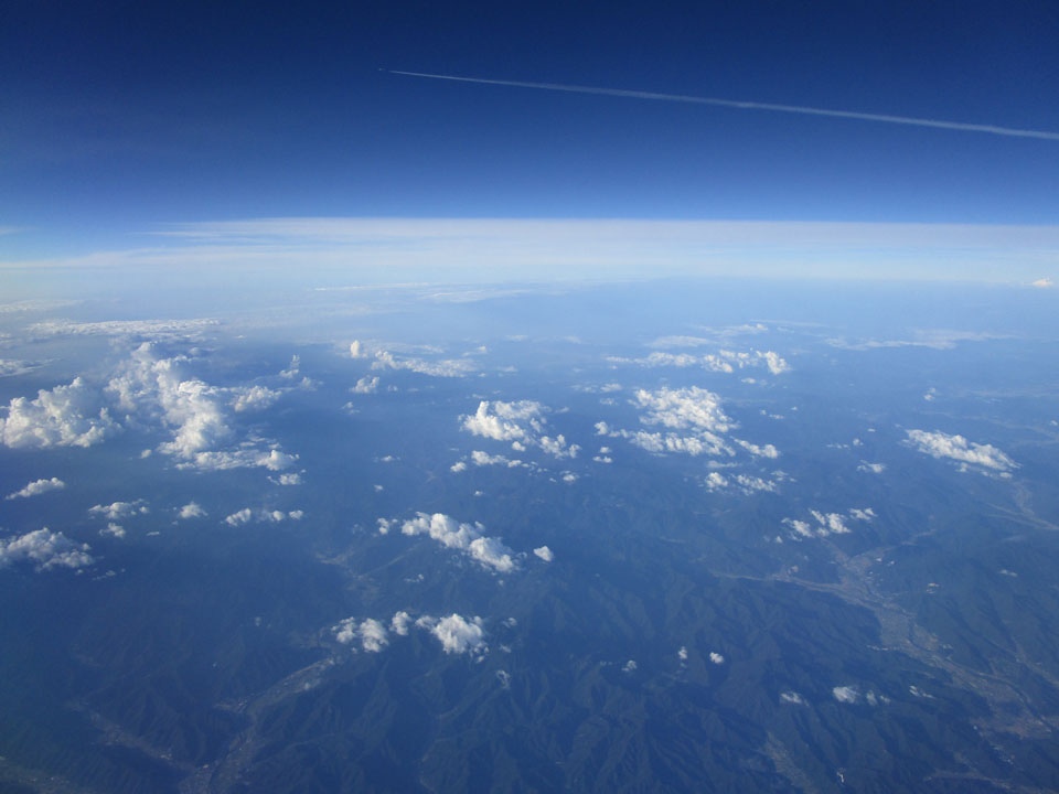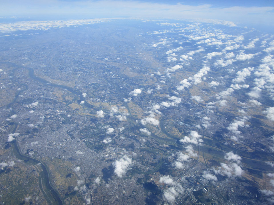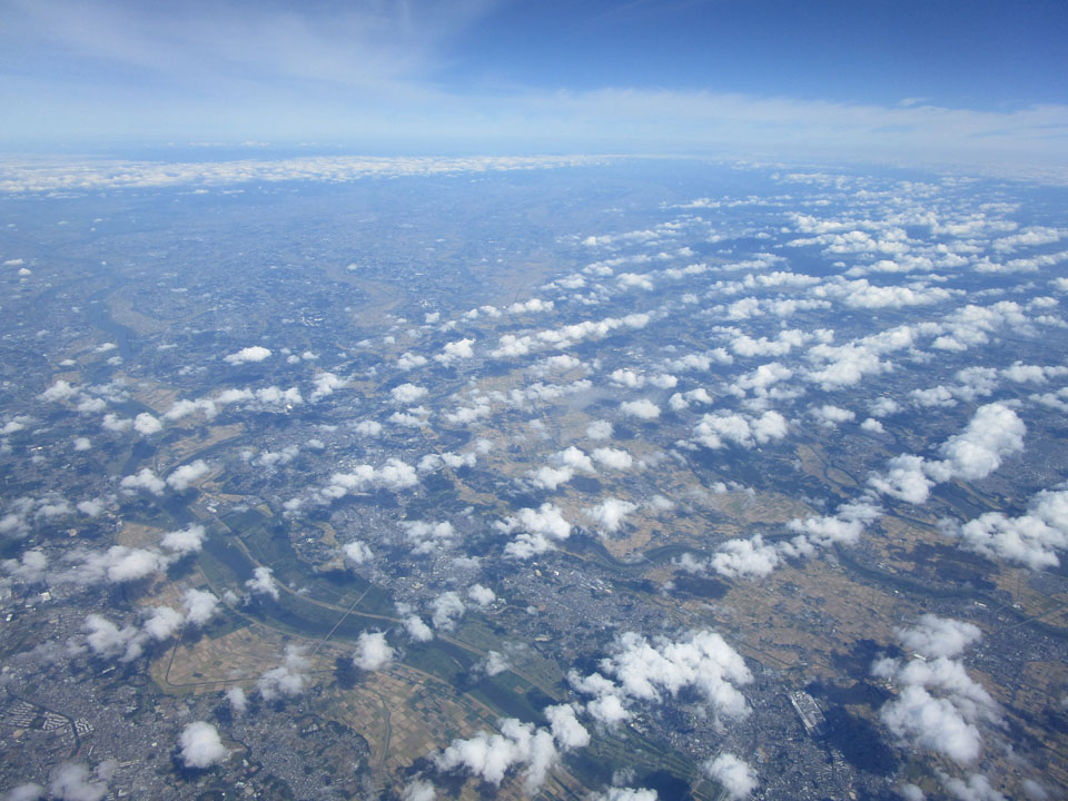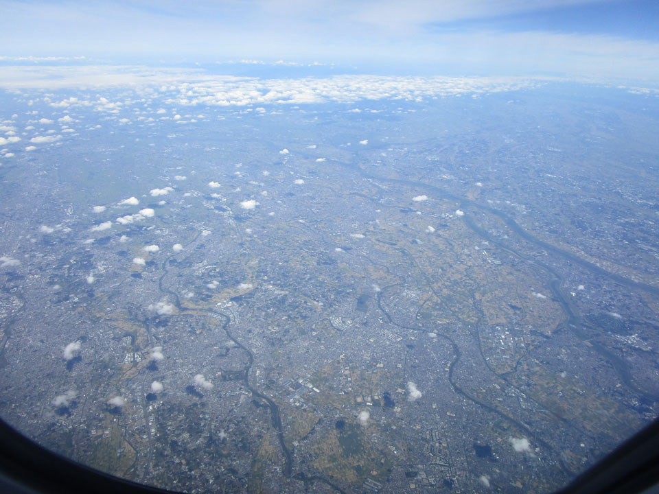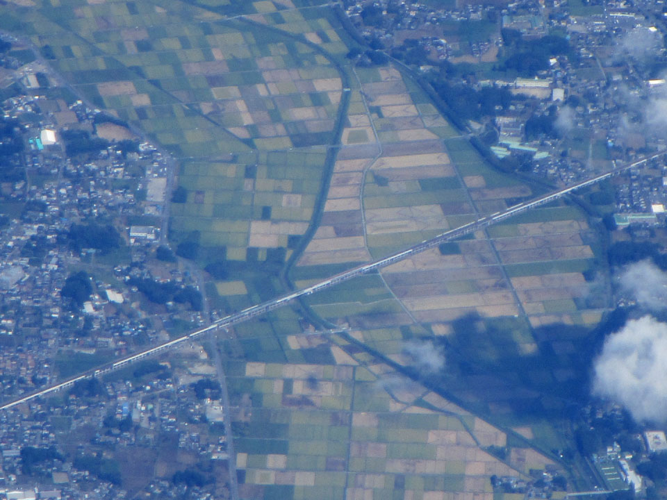 成田スカイアクセス線に乗って成田空港へ。良く晴れている。