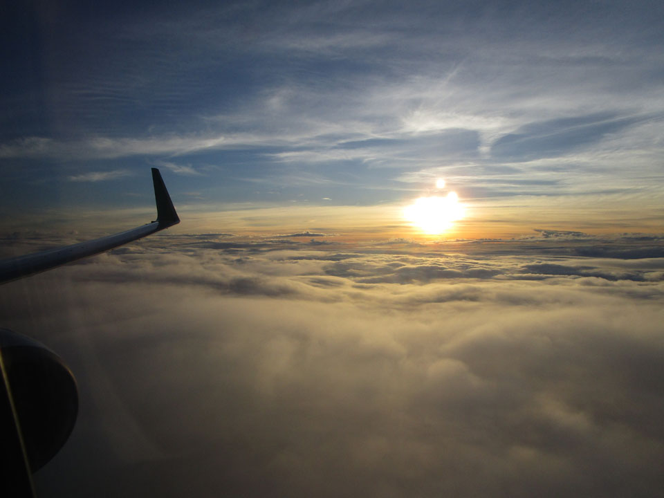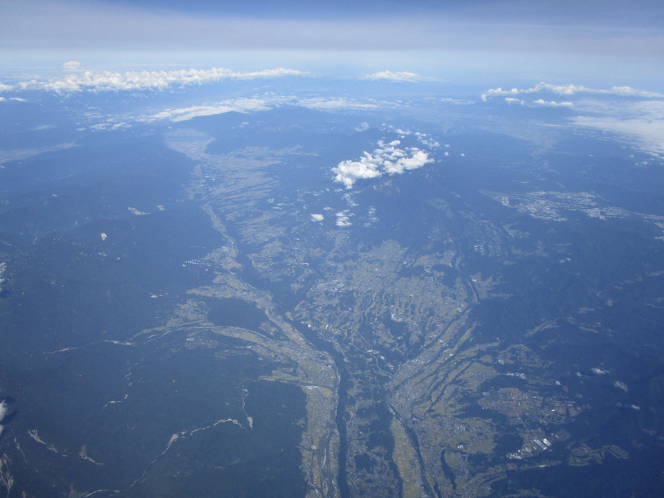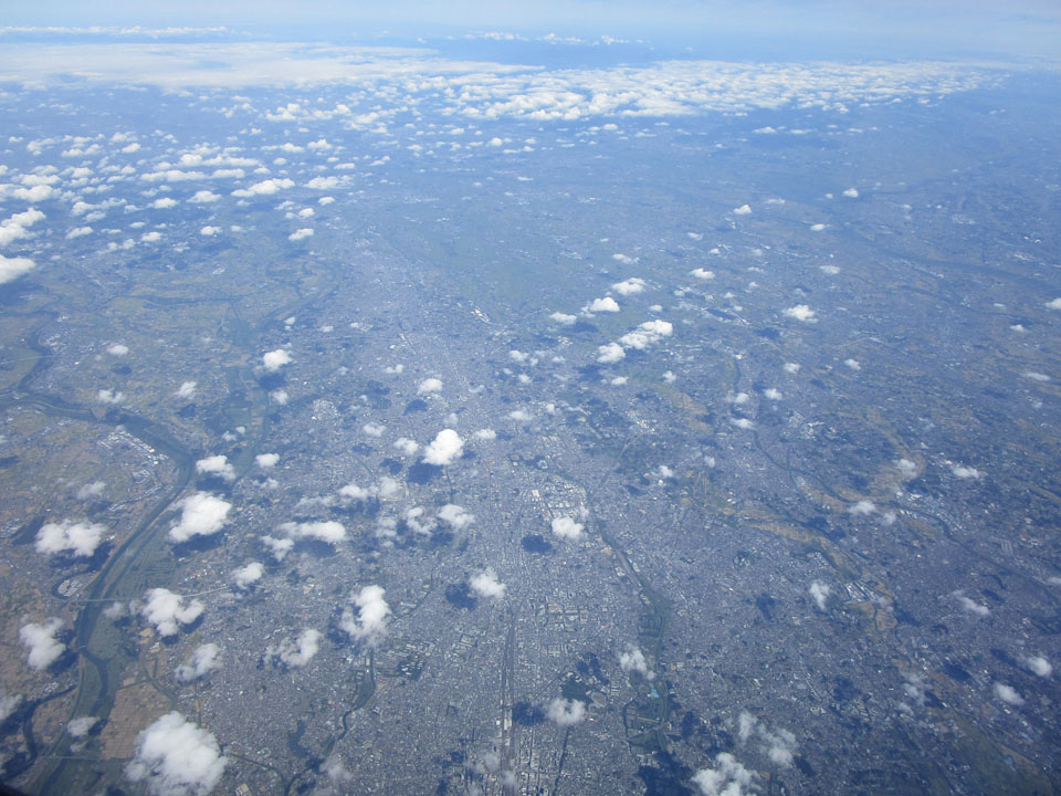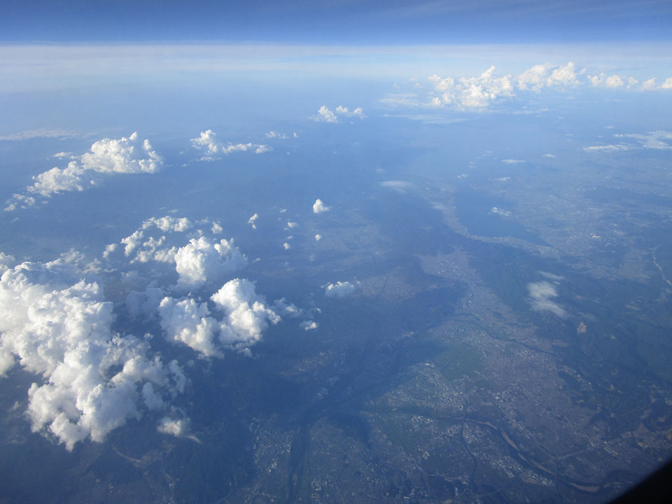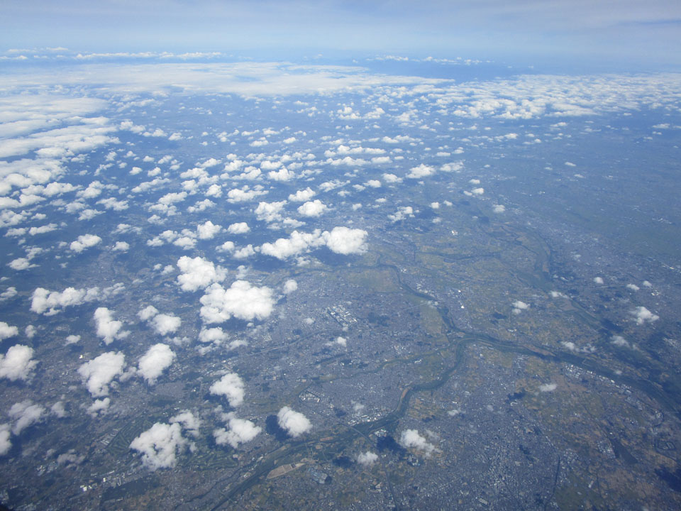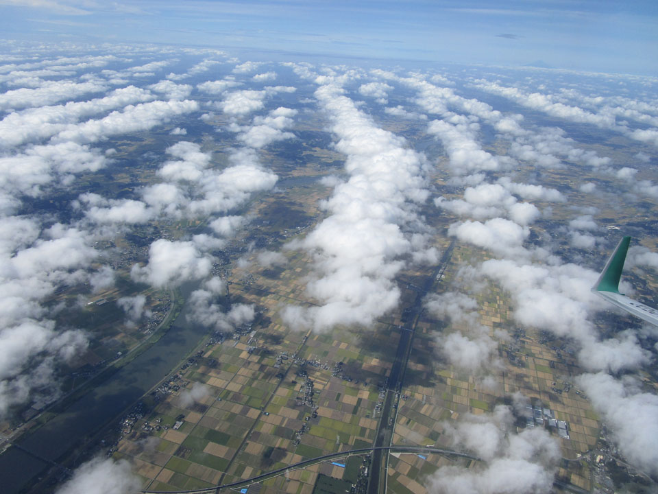 成田スカイアクセス線に乗って成田空港へ。良く晴れている。