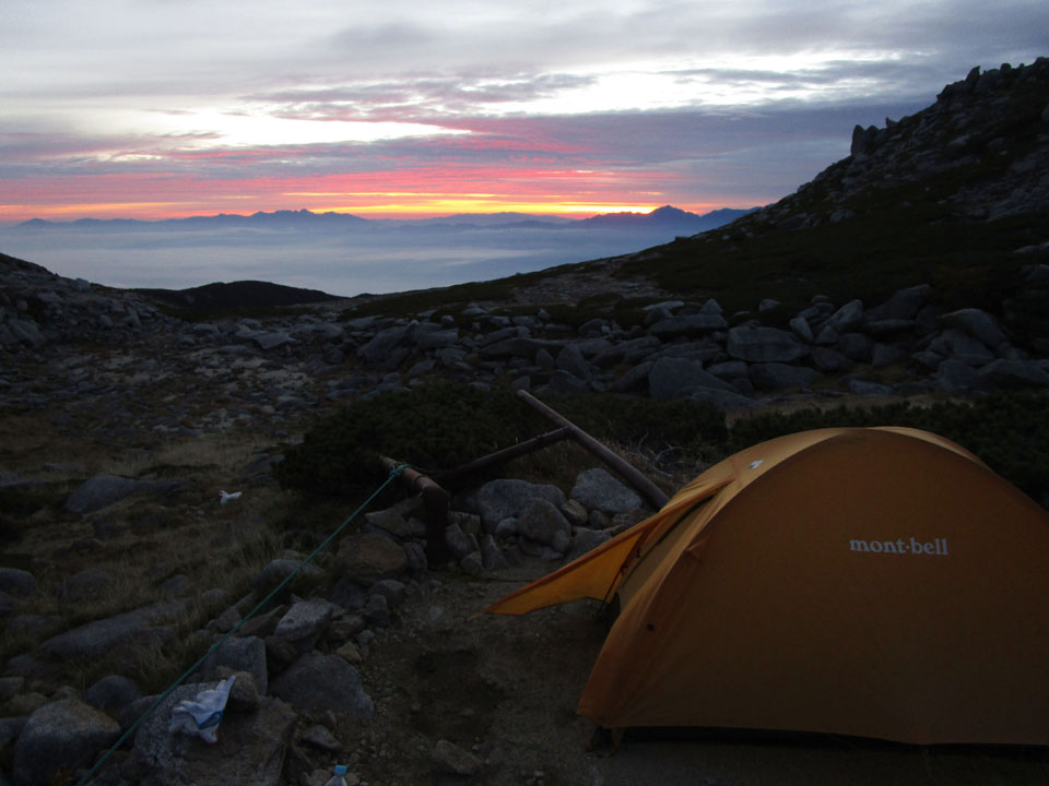 モンベル#2(快適2℃まで)+ホッカイロ2枚でぬくぬく熟睡。むしろ寝るときには暑かった。