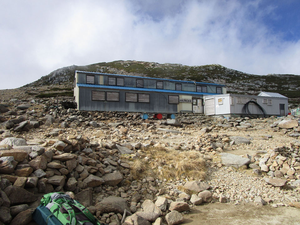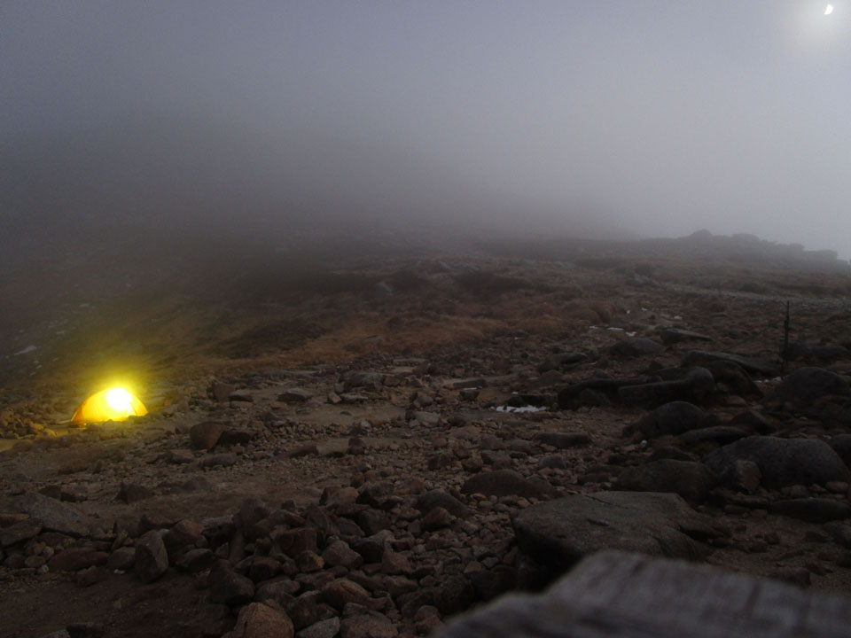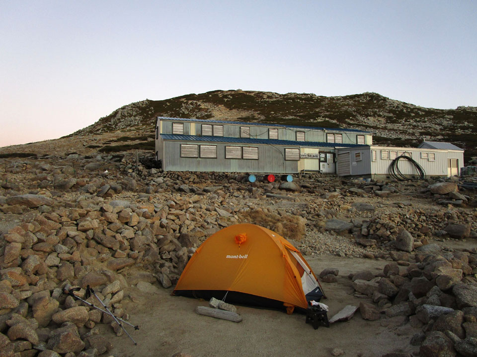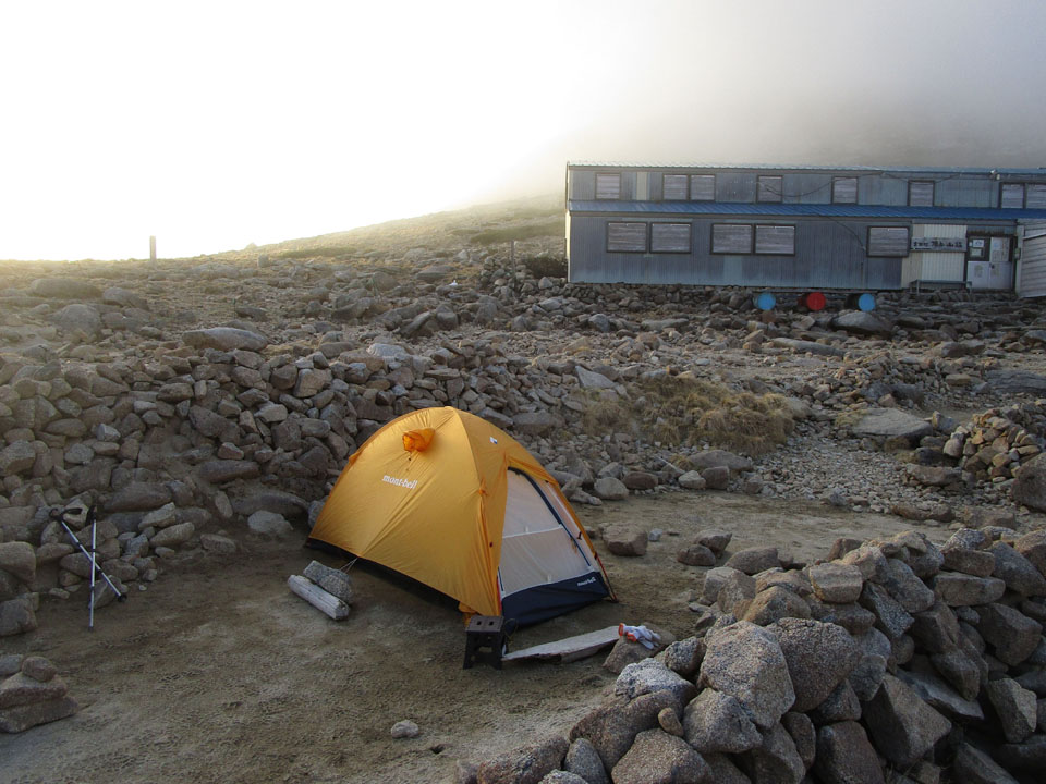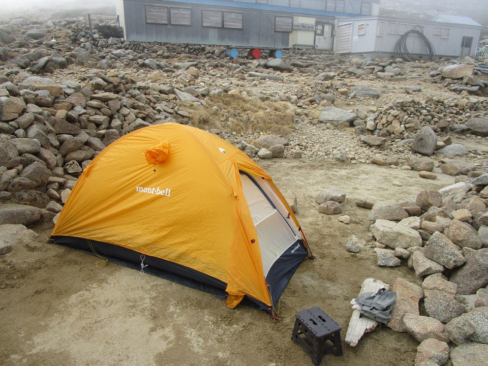 茶色い台は、なぜかテント場にあったもの。設営終了時は元の位置に戻している。