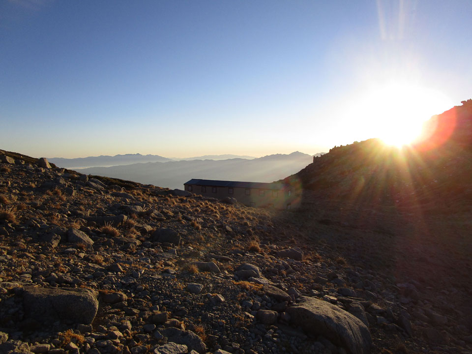 夜の外気温は不明だが、小屋公式では-5℃、風速7m/sという報告。