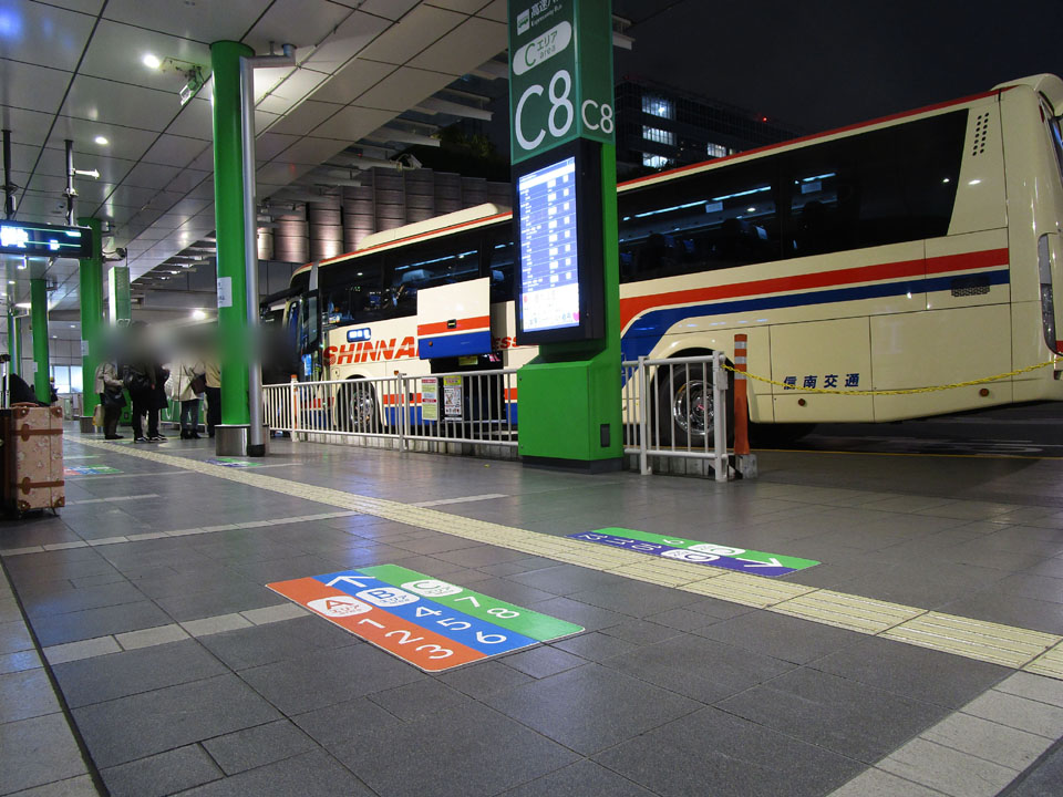 新宿では、バス停からSSLの4番線には2分で乗り換えできる。