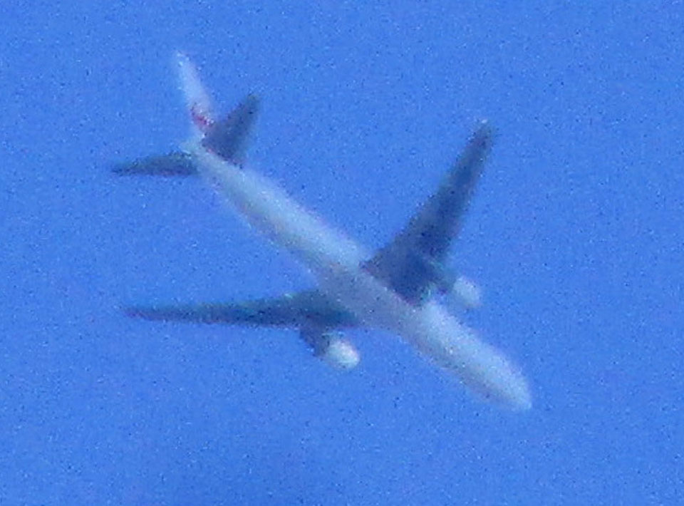 上空を飛行機が通過。