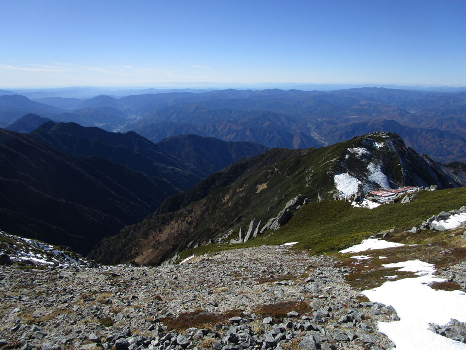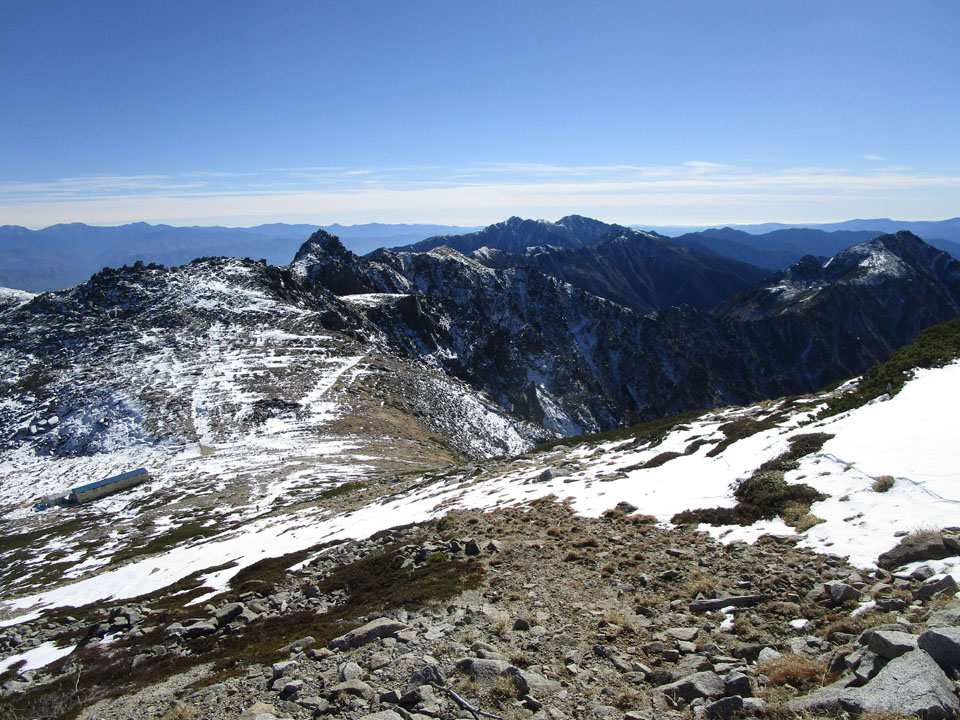 穂高槍や、立山はもう雪で真っ白になっている。完全に冬山。