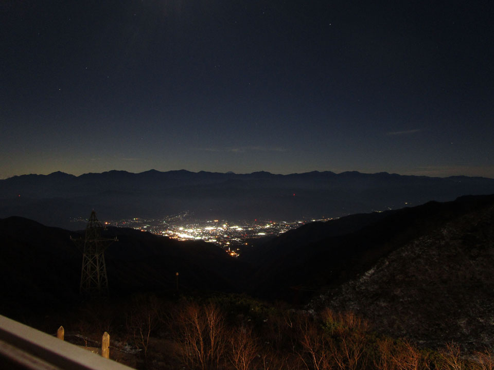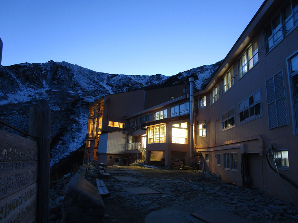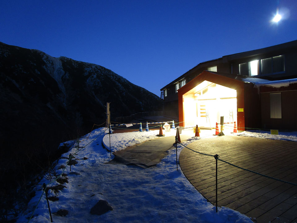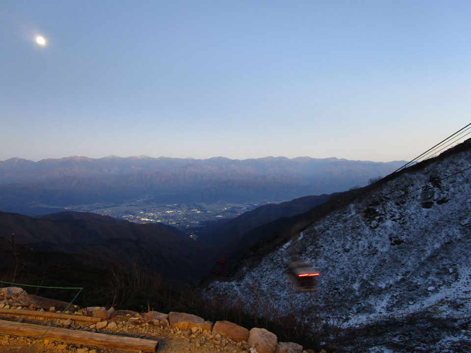 日が沈んだ。スタッフ輸送用の最終ロープウェイが運行。