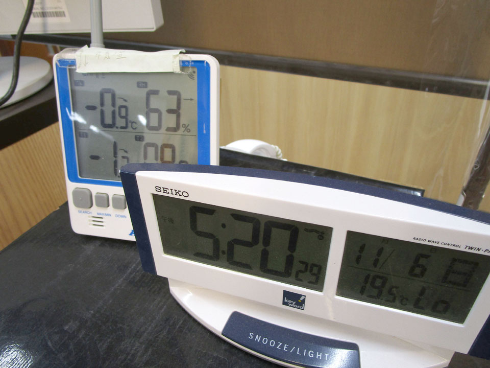 気温が下がってきた。-0.9℃。