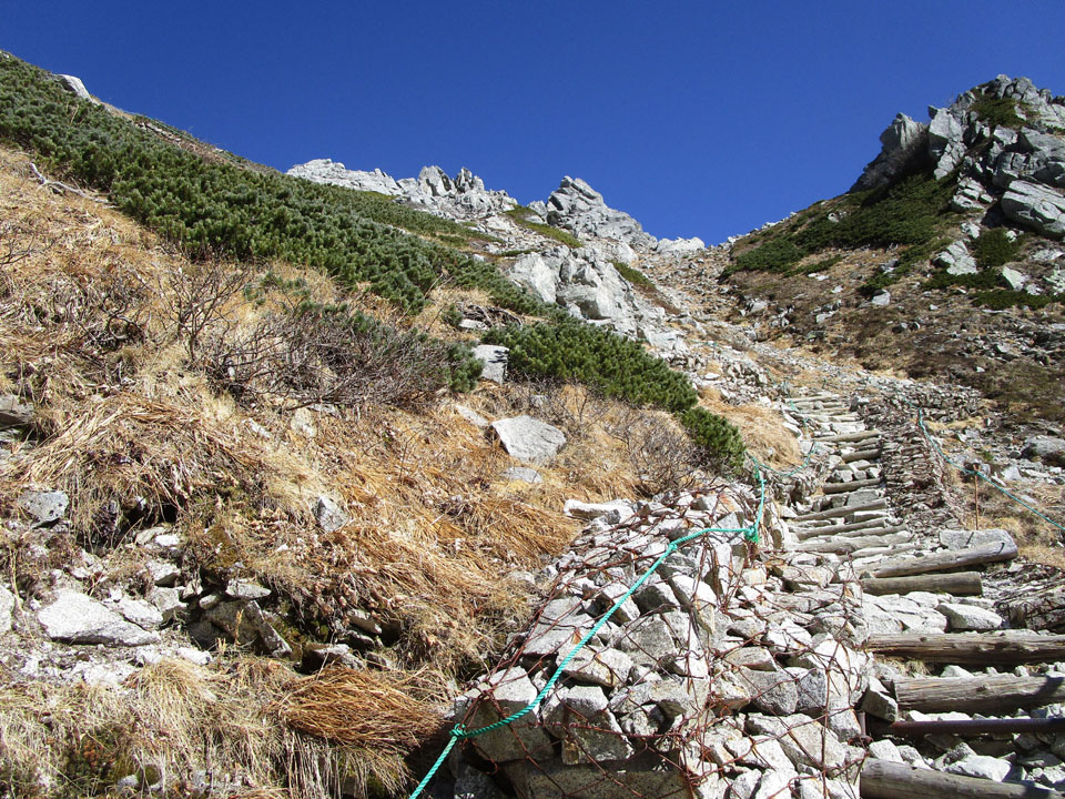 巻き道は極めて危険。中岳頂上を経由しよう。