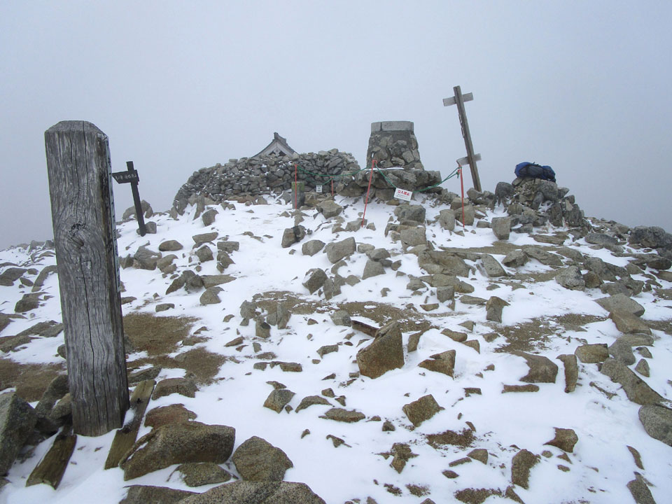 頂上。こんなところに長居は無用。とっとと戻ろう。こんな天気でも4人くらいいた。