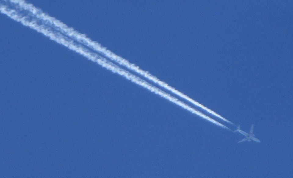 飛行機雲が多い。31,000ftから上で飛行機雲が出ていた。