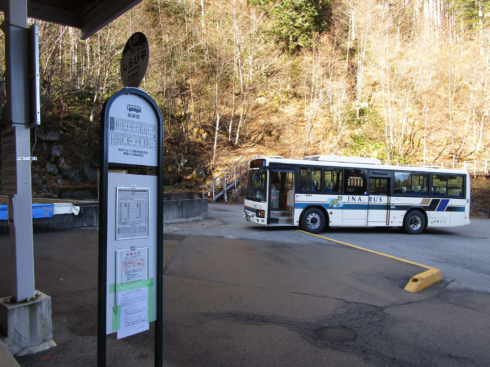 ホテルで朝食を食べたあとは、文化会館バス停からしらび平へ。