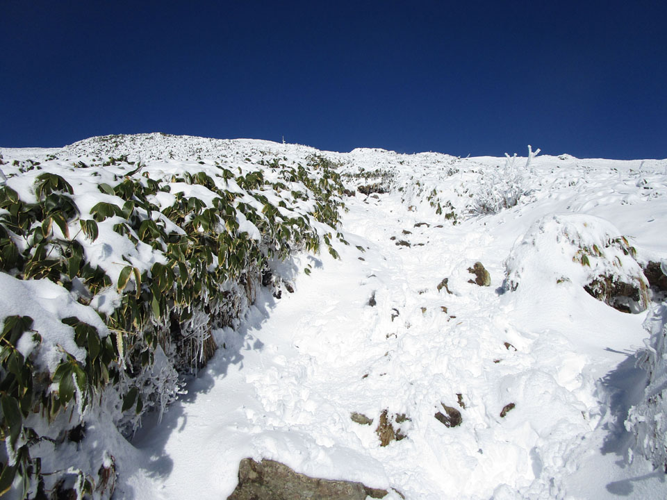 天神ザンゲ岩を過ぎると肩の小屋直下の大斜面。