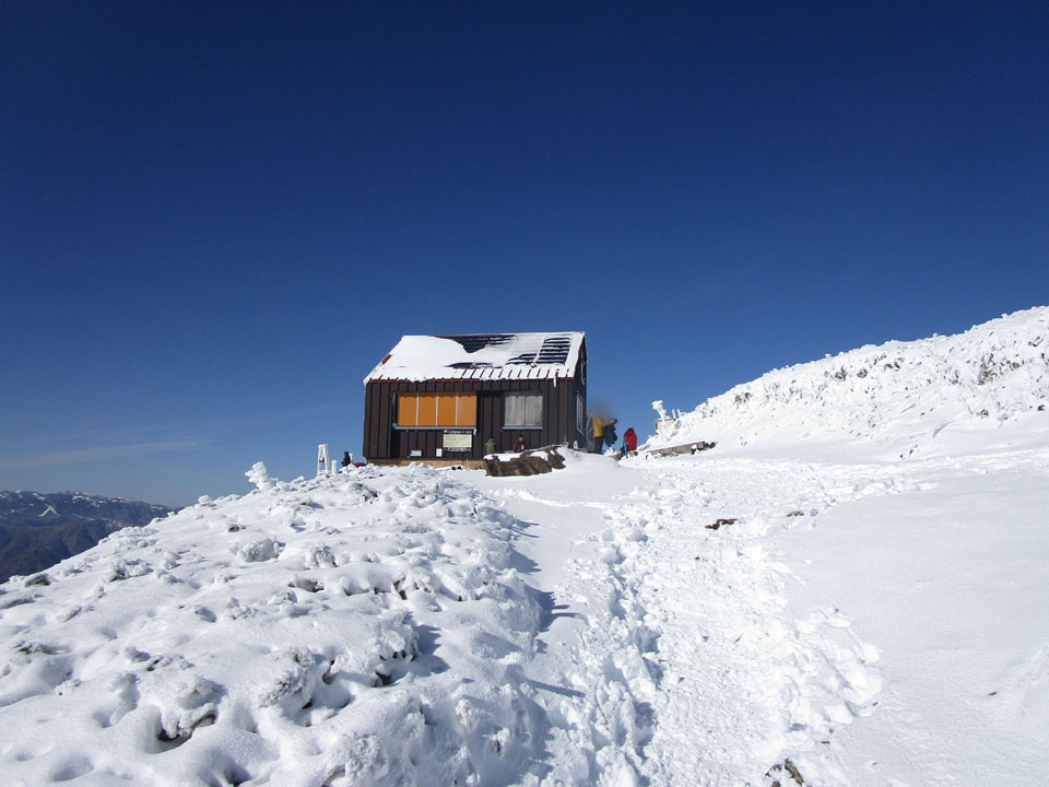 100cmくらいまでなら途中の熊穴沢避難小屋が利用可能で、