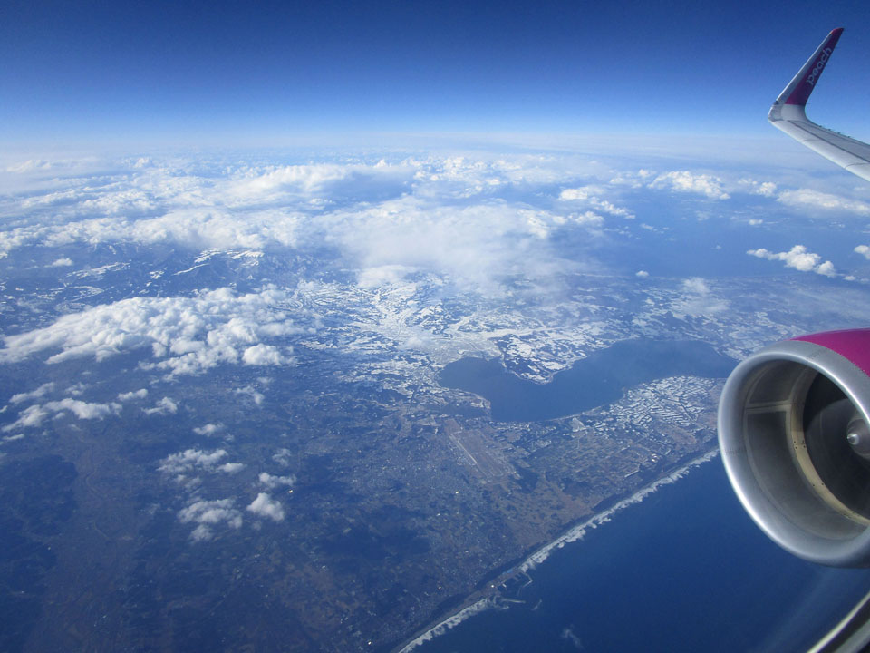 東側を向く席では、羽田便ならともなく成田便だと海しか見えないのである。