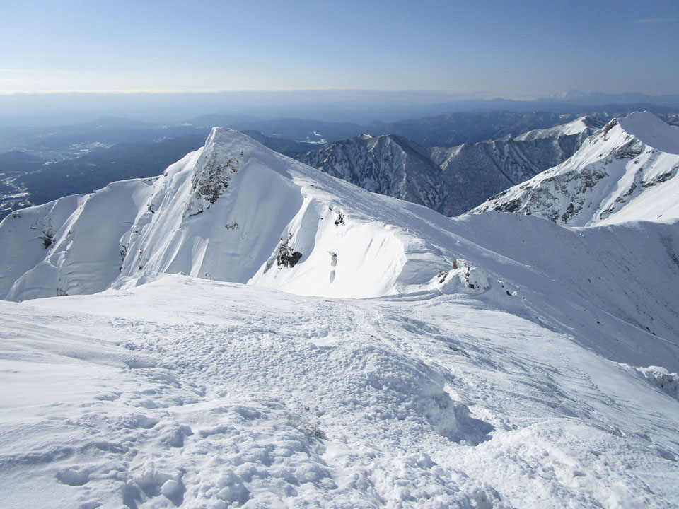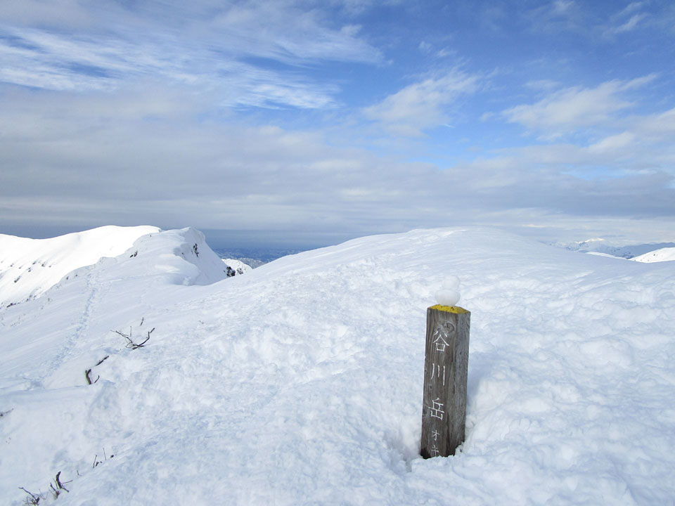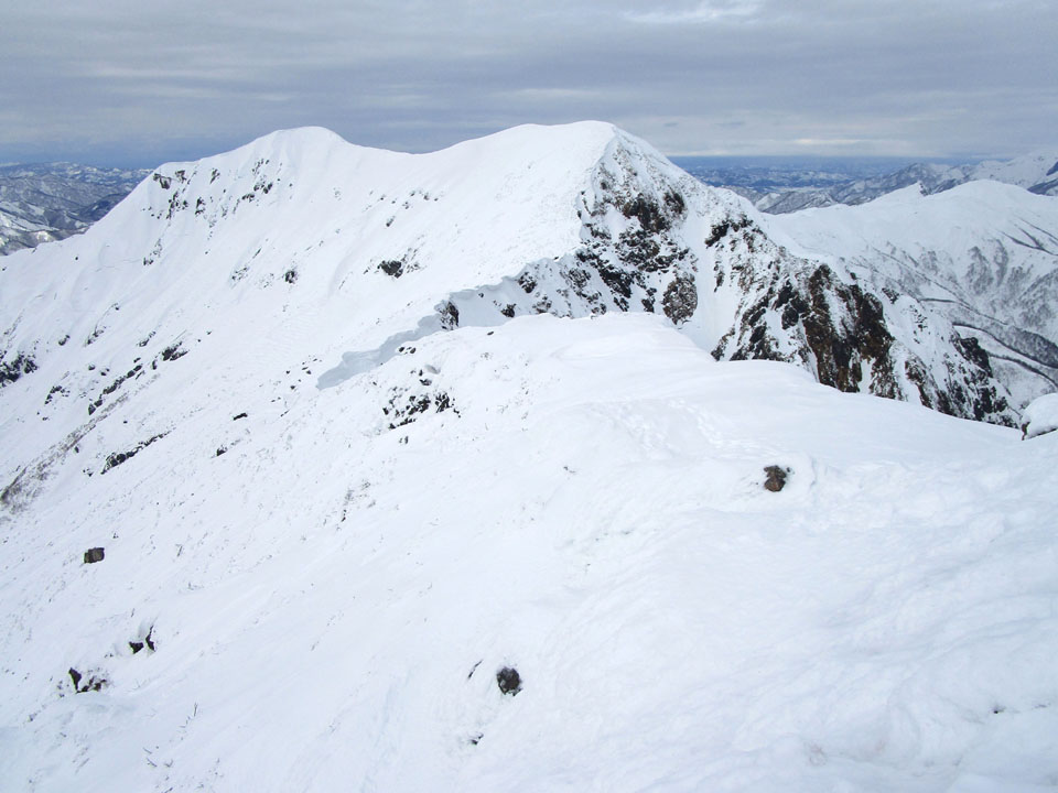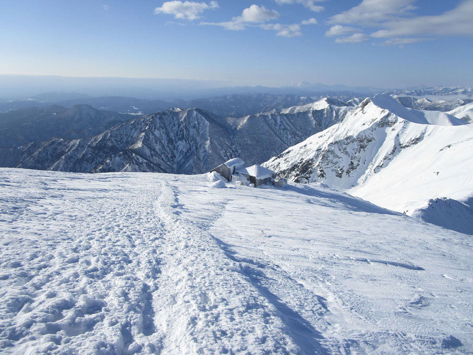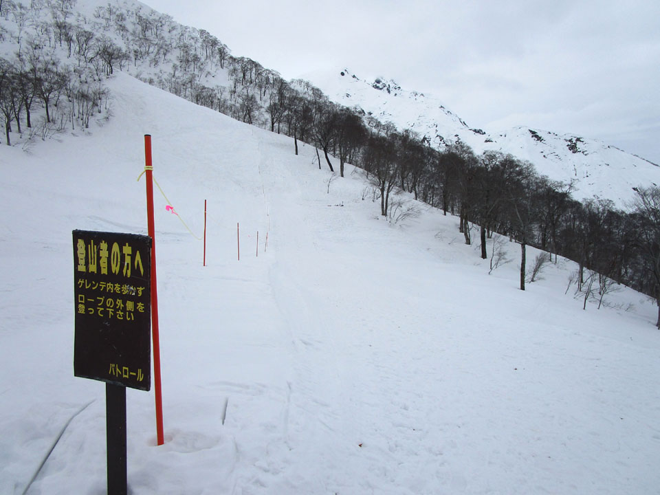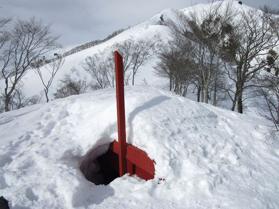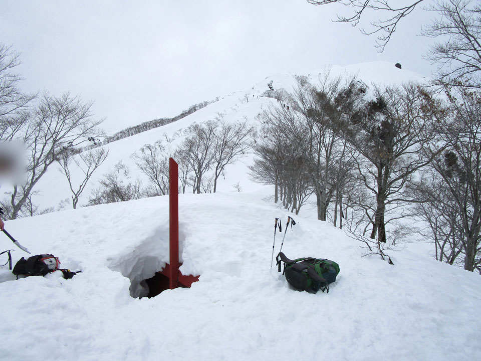 越後側に落ちないように注意。雪が硬くて奥の院は危険。