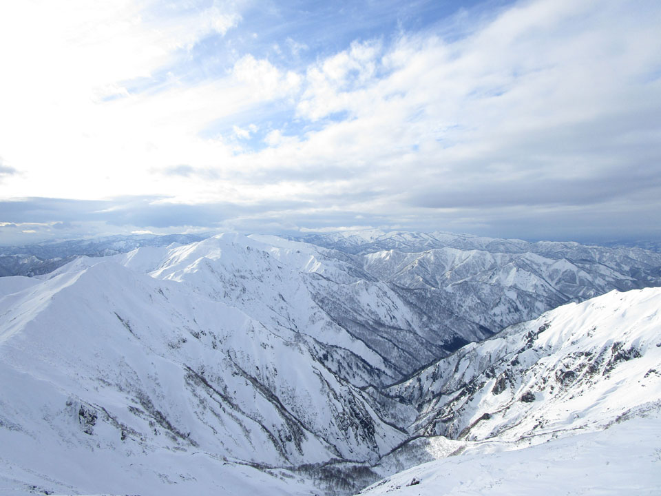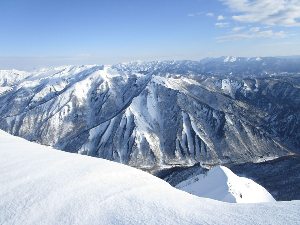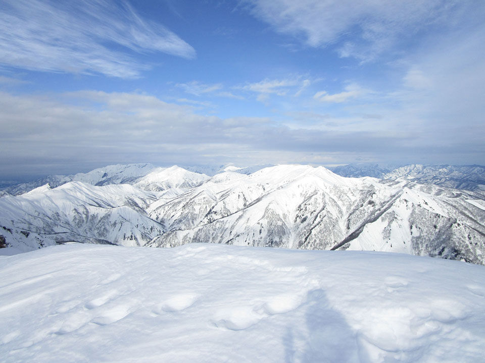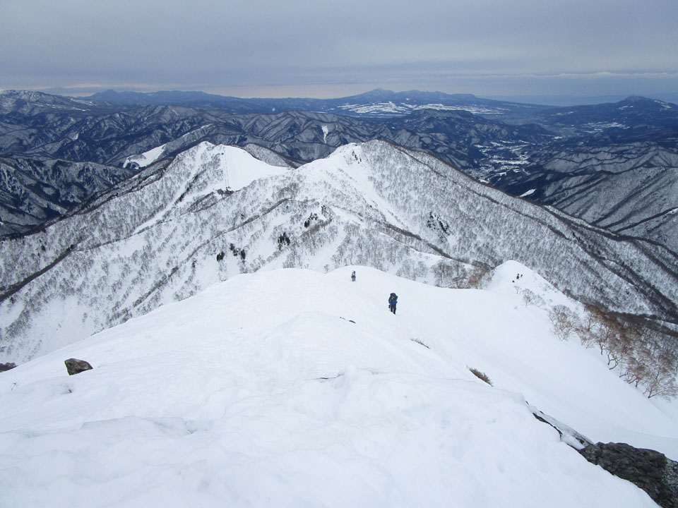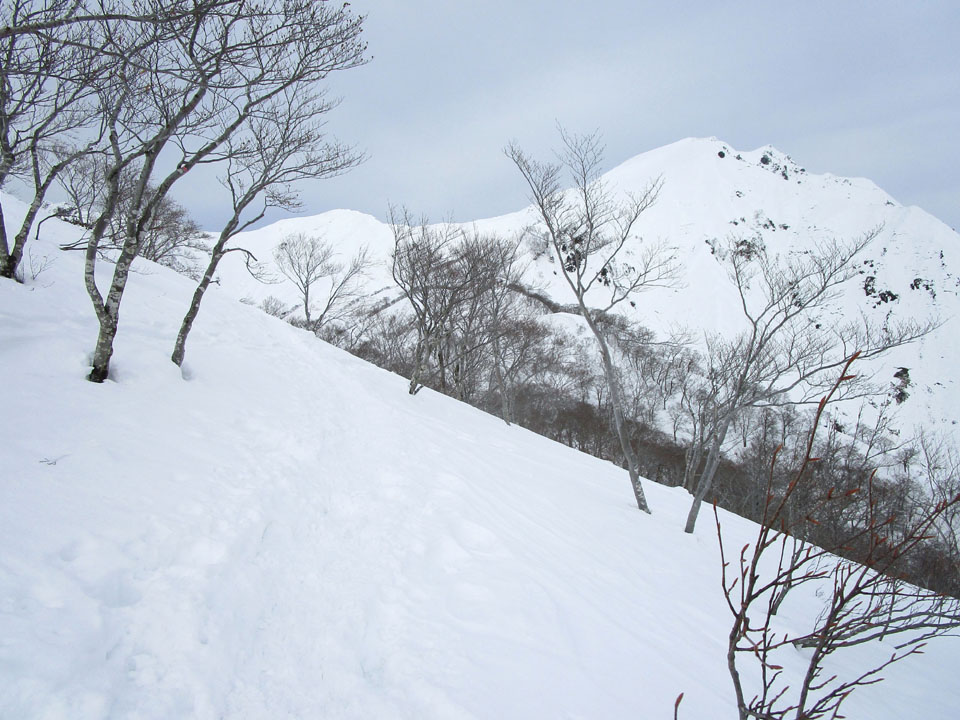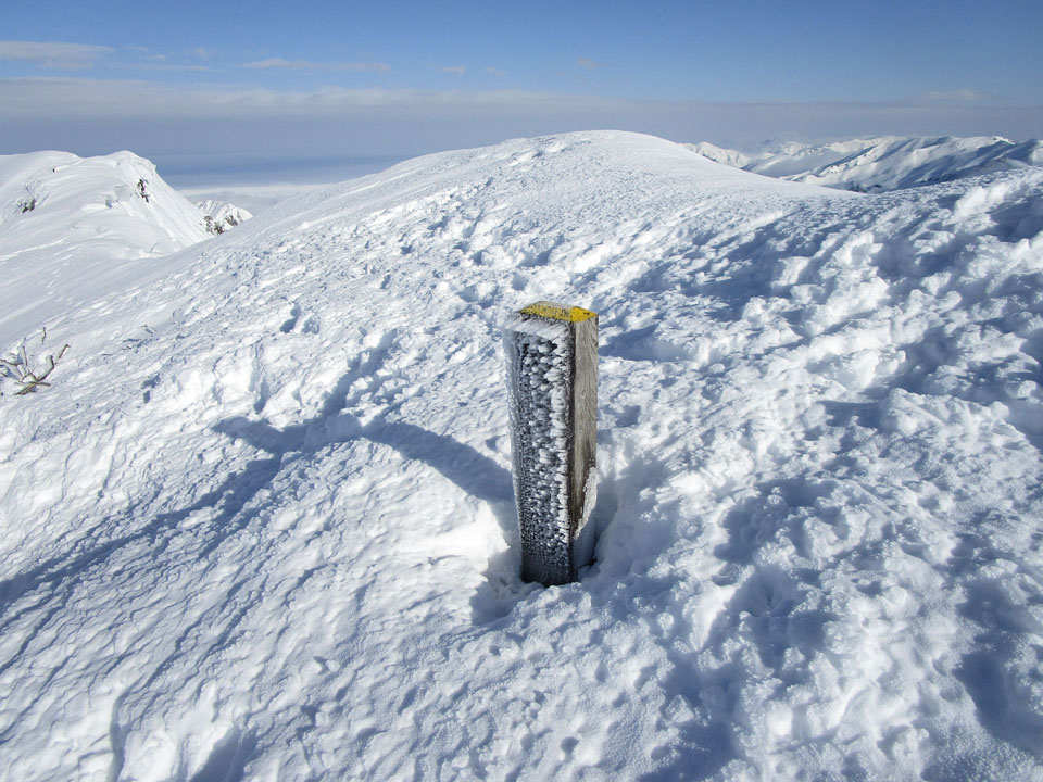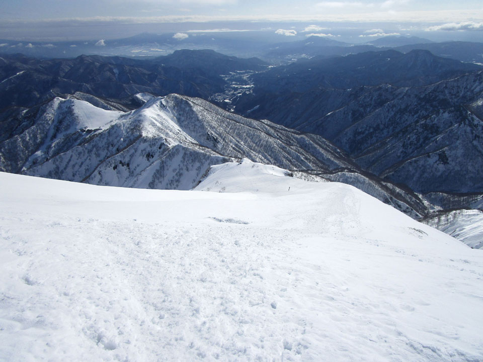 越後側に落ちないように注意。雪が硬くて奥の院は危険。