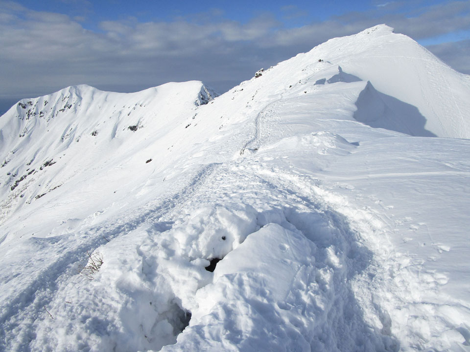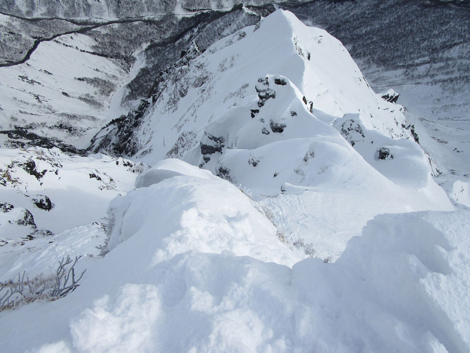 しかし、雪庇崩壊の危険がある。近寄らないほうがいい。