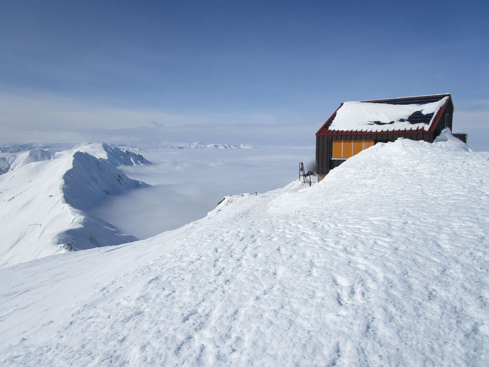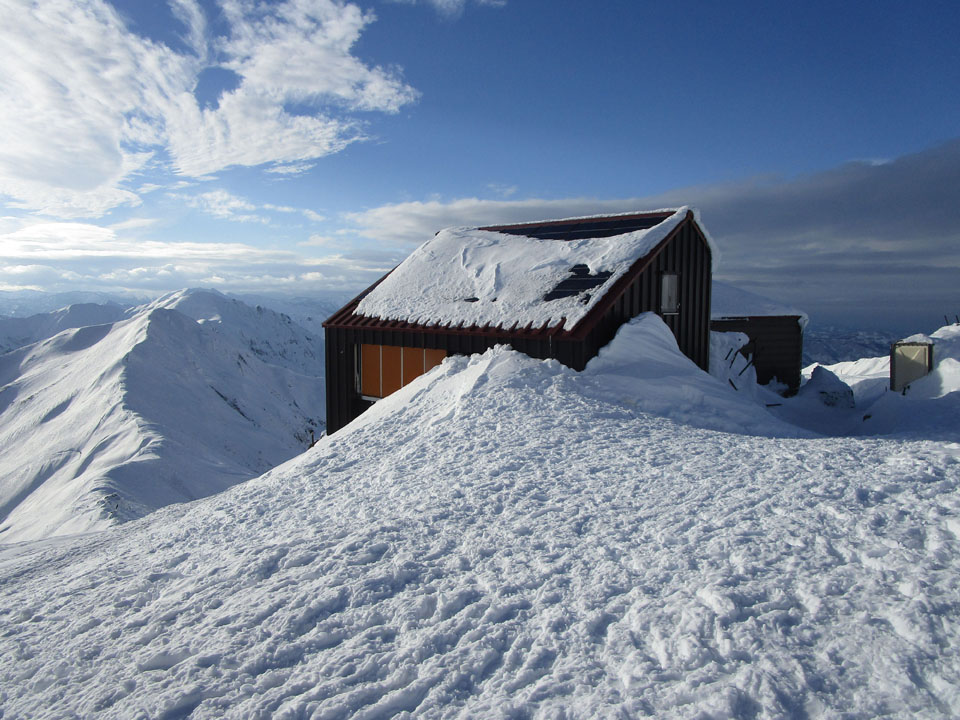 小屋がかっこいい。昼飯を小屋で食べてから下山にかかろう。