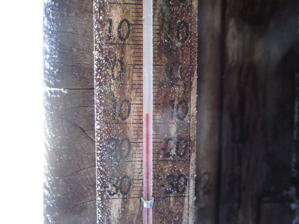 外は-7.6℃である。ヤマテン予報では-1℃だったのでだいぶ低い。