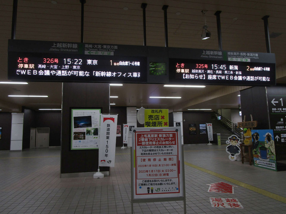 上毛高原駅から新幹線で戻る。勾配の変化がよくわかり面白い。