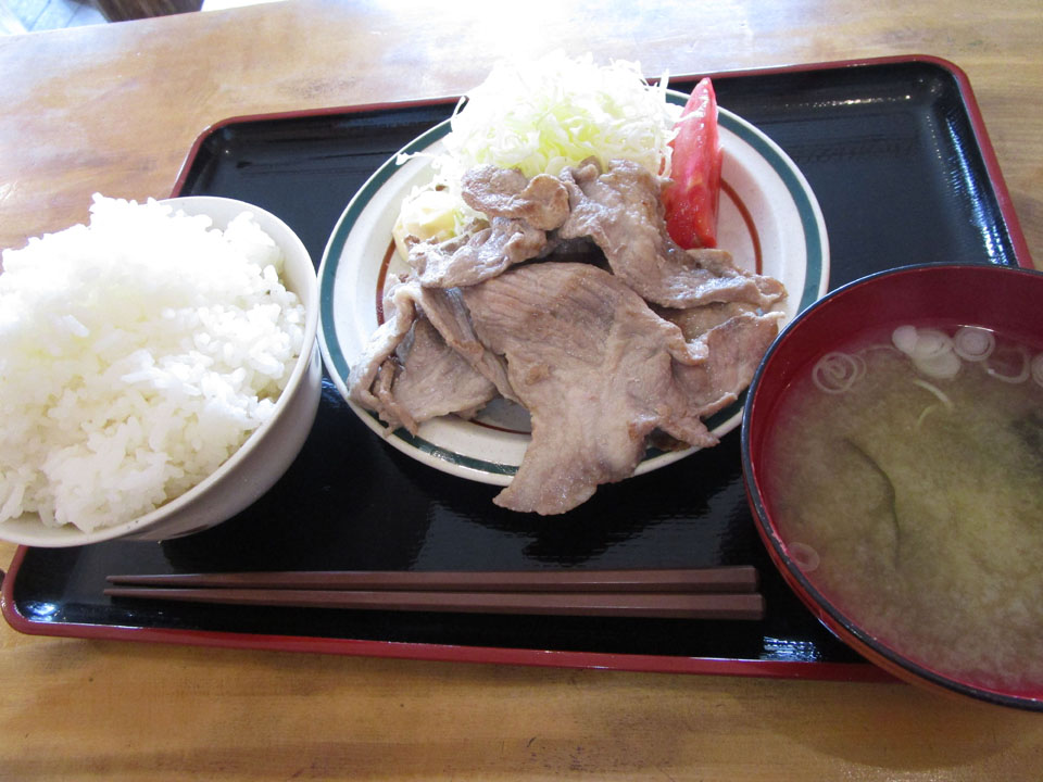 桧枝岐小屋で焼肉定食、+100円払ってごはん大盛りにしてもらう。