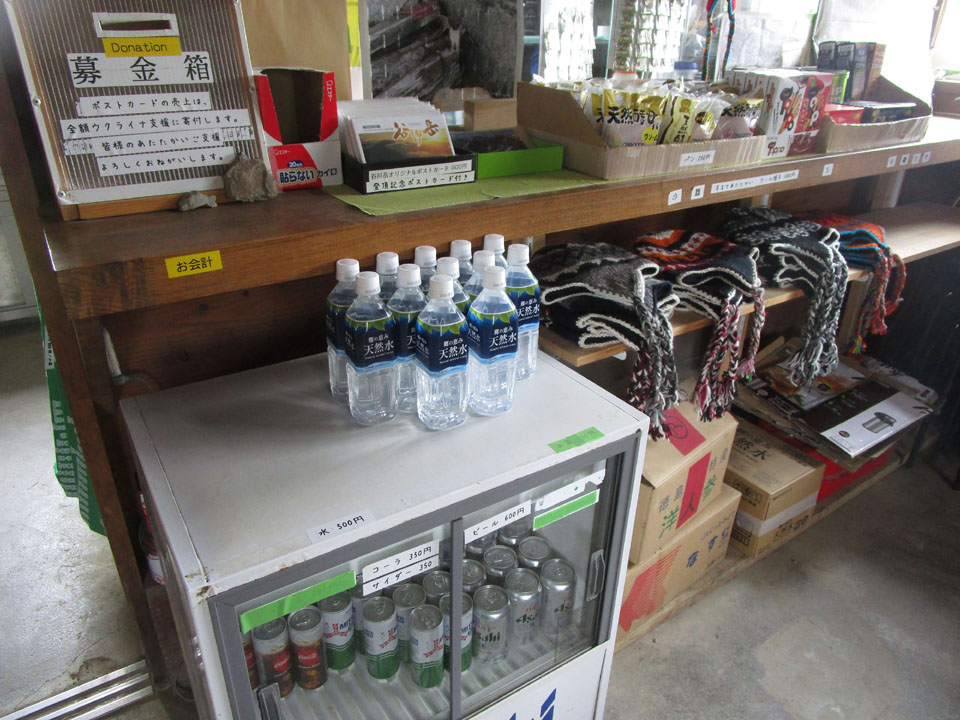 売店では、ペットボトルの水(ミネラルウォーター)500円、菓子類などがあり、