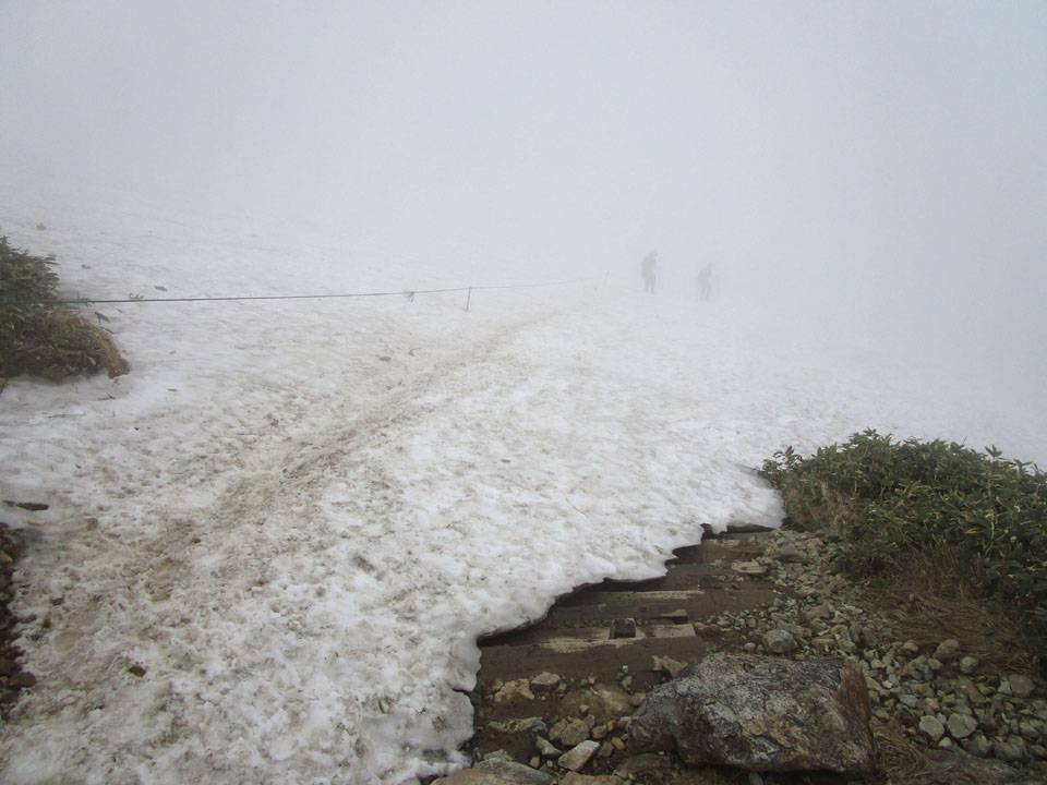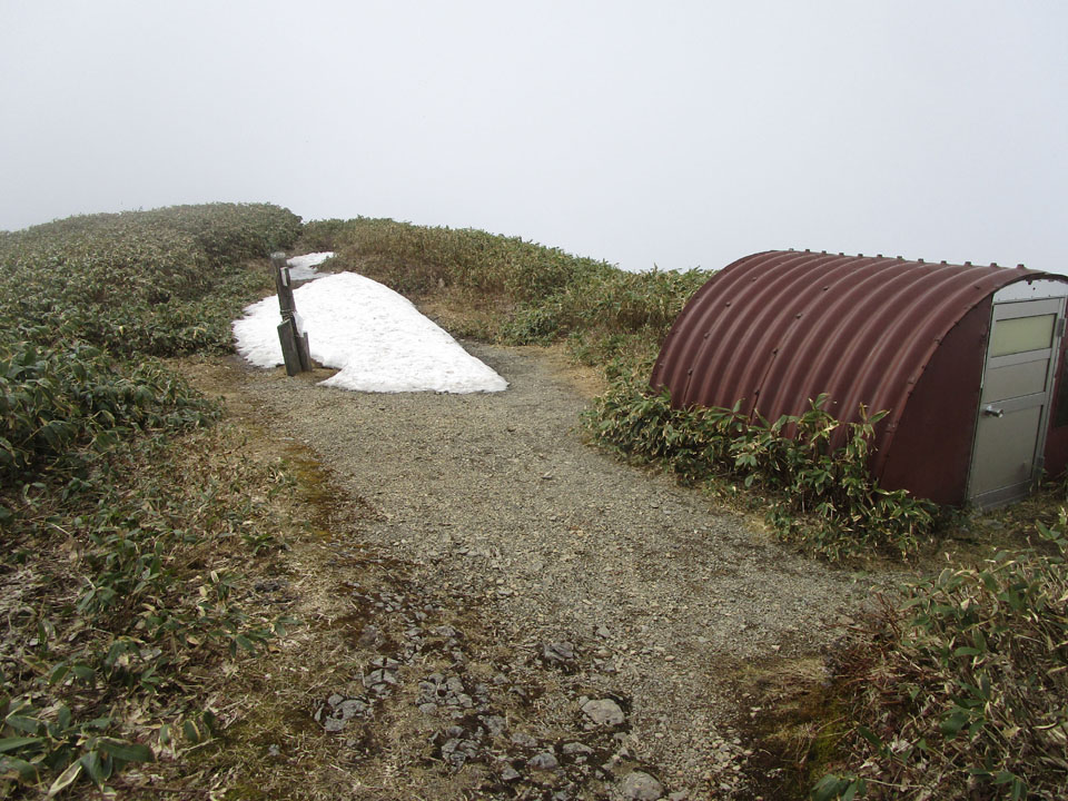 肩の小屋手前の広場には、いつものとおり残雪がある。
