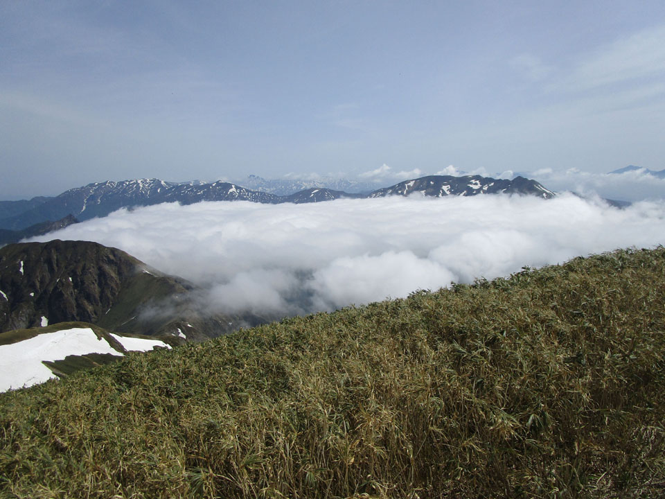 今日は良く晴れている。越後側は雲海だ。