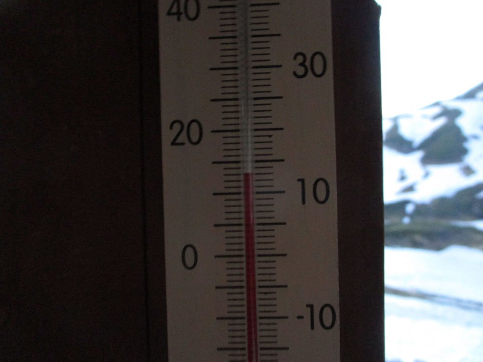 スマホ温度が5℃だったので、テント内4℃、外気温2℃くらいだろう。