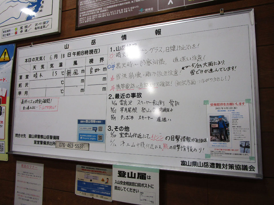 室堂ターミナルの情報掲示板。