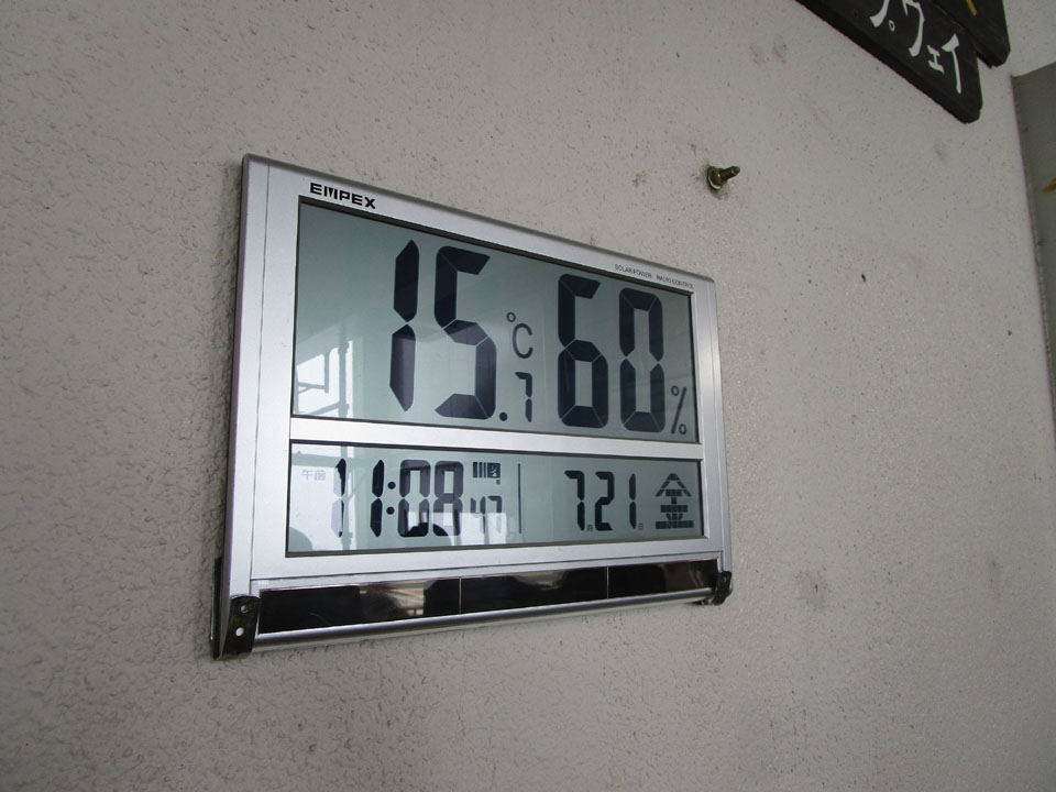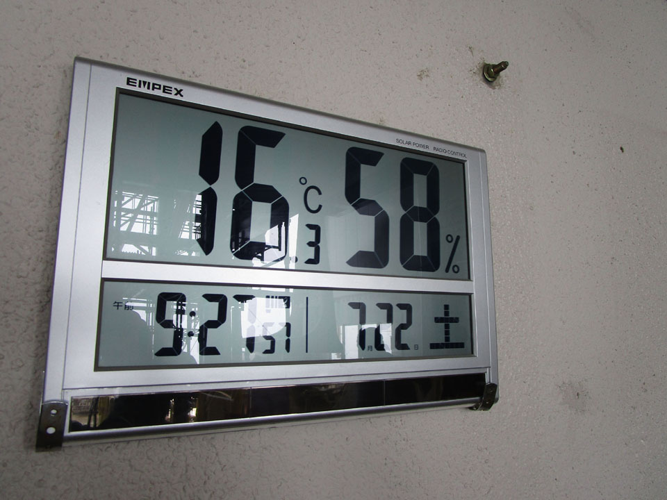 スマホ温度では最低.4℃。外気温は最低2℃程度か。