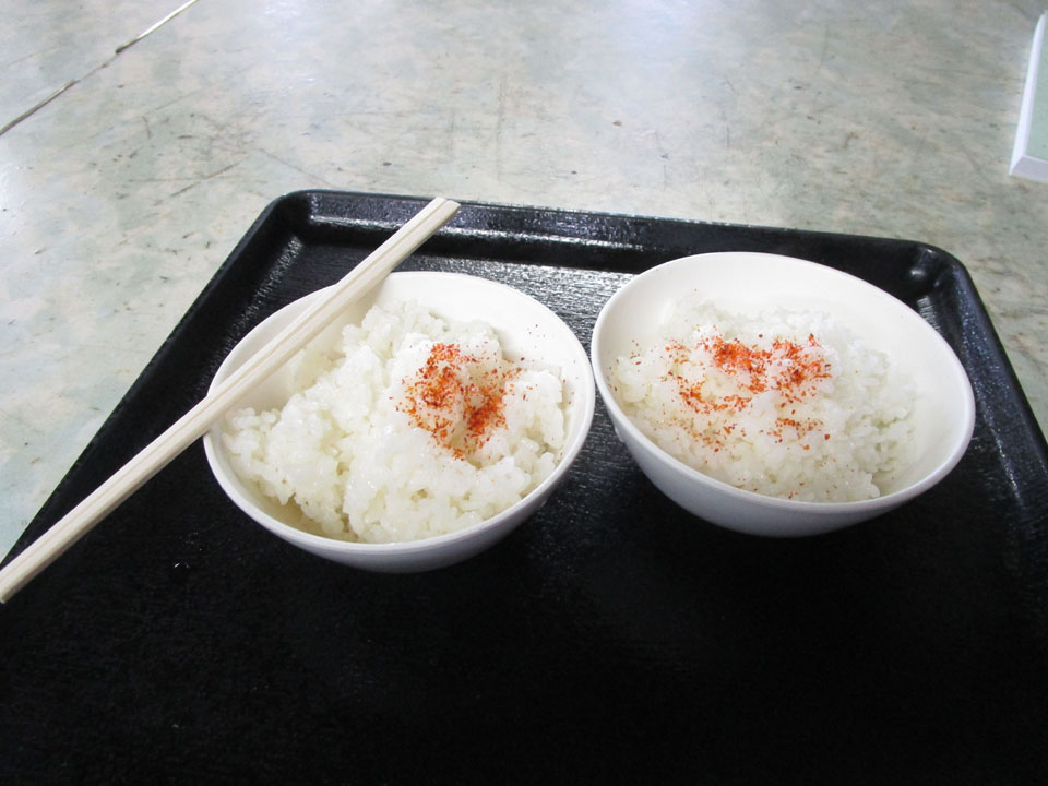 宝剣山荘ではご飯単品(200円)を食べる。時間は10〜13時に短縮されている。